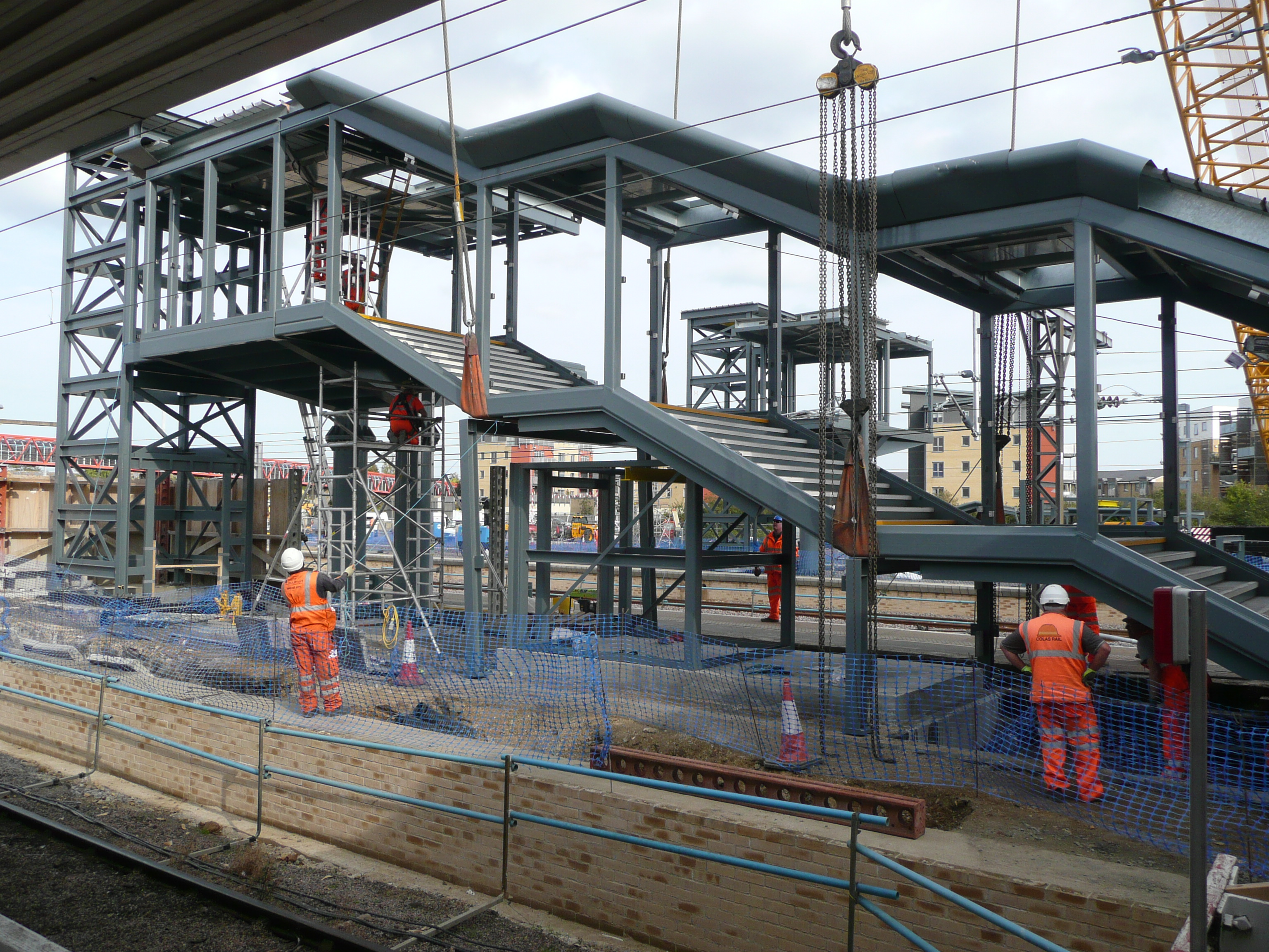The footbridge connecting the new island platform (platforms 7 and 8) at Cambridge to the existing station was lifted in on Sunday 25 September 2011.