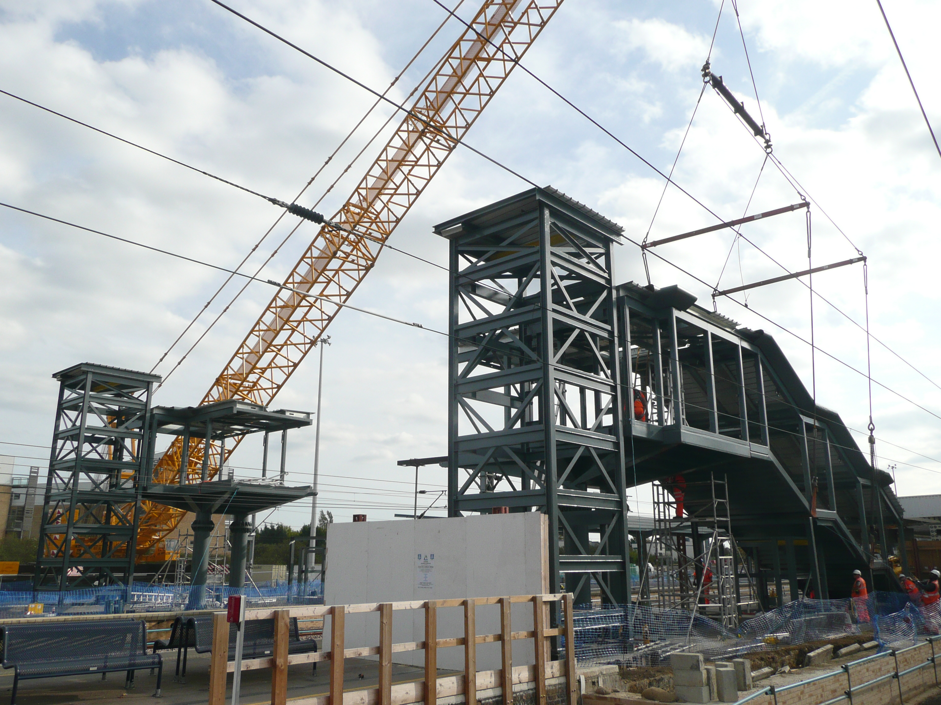 The footbridge connecting the new island platform (platforms 7 and 8) at Cambridge to the existing station was lifted in on Sunday 25 September 2011.