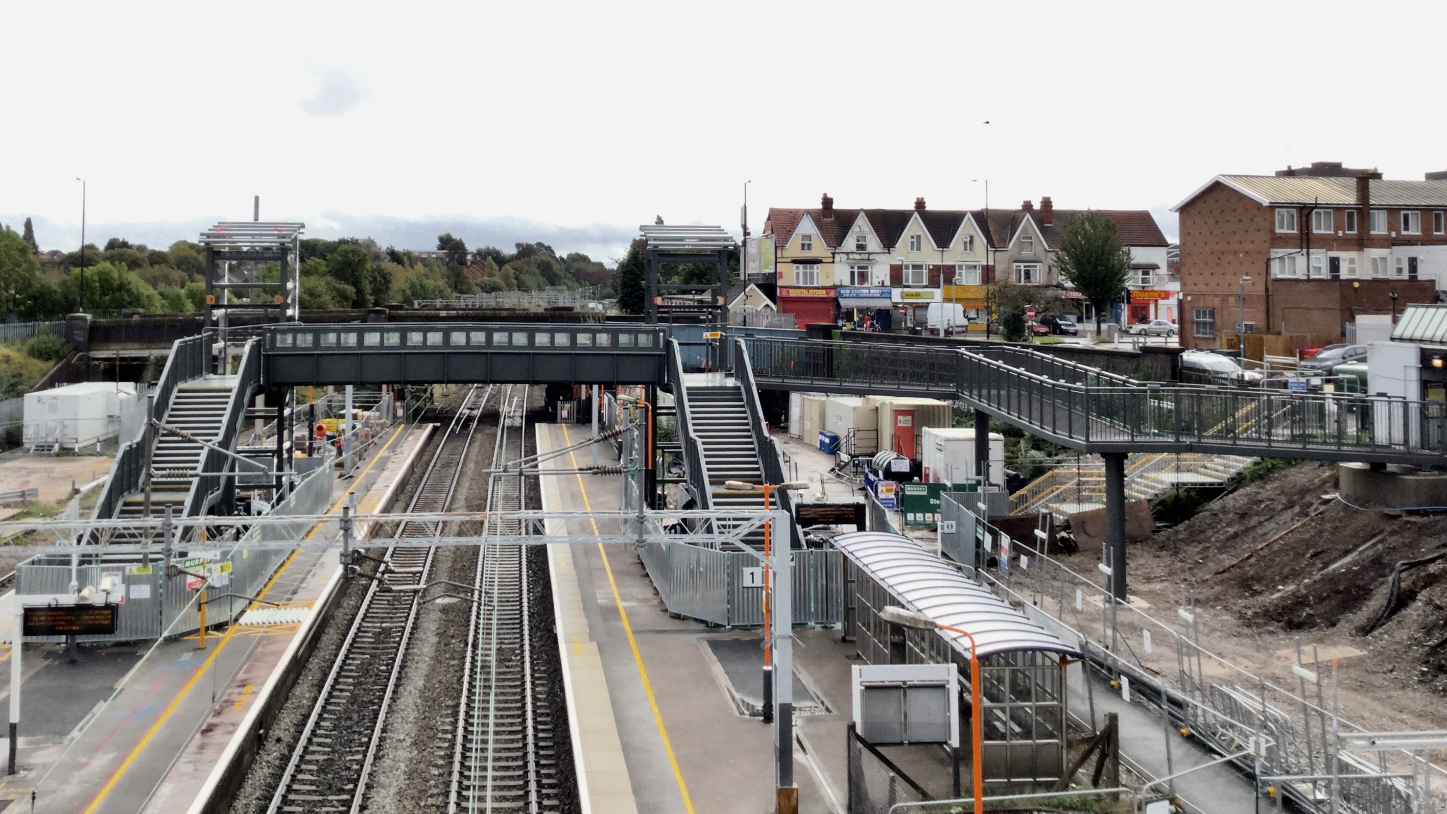 Panoramic view of the partially built new footbridge at Stechford station - October 2019