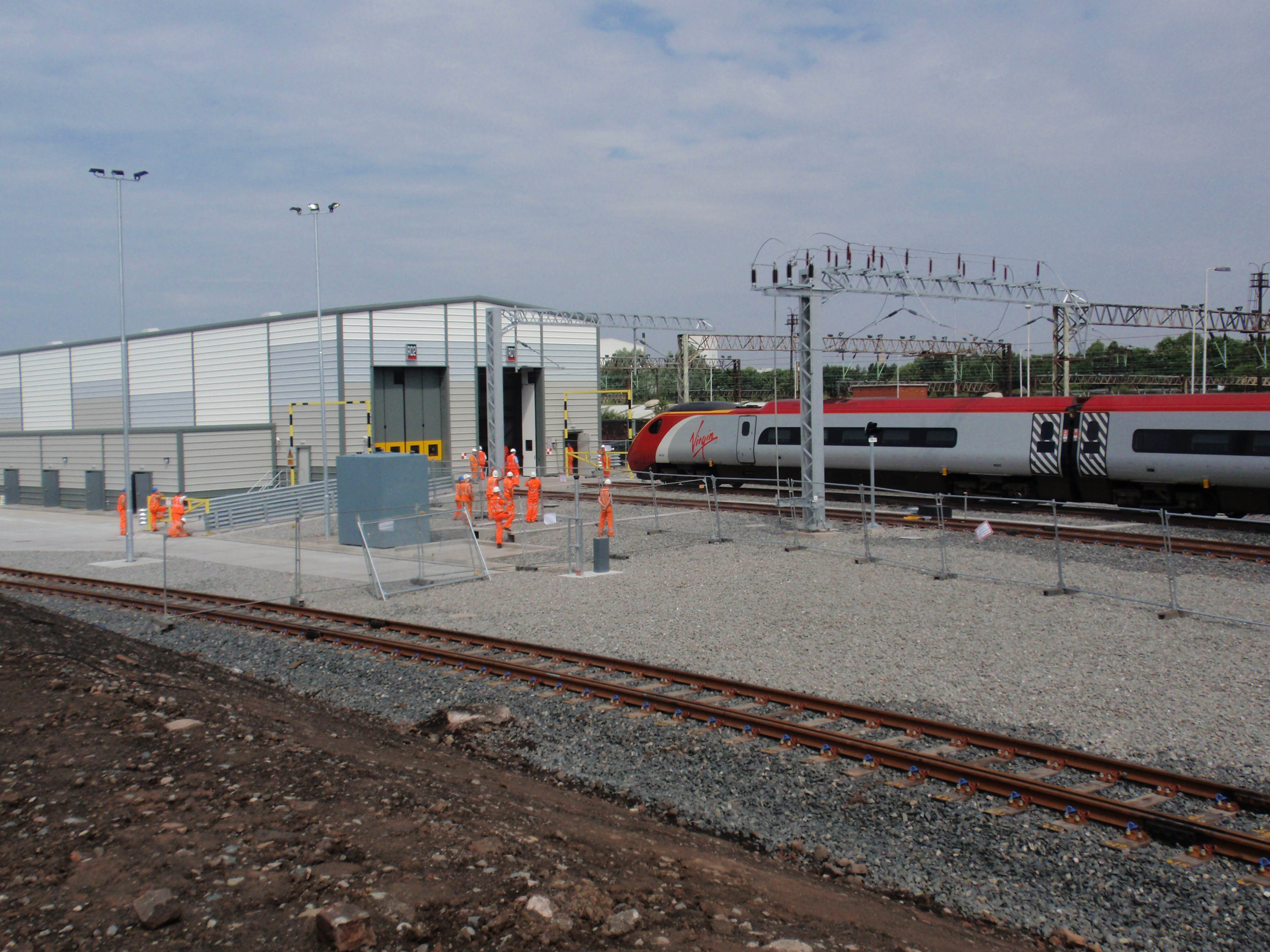 Pendolino waiting to enter the new maintenance building