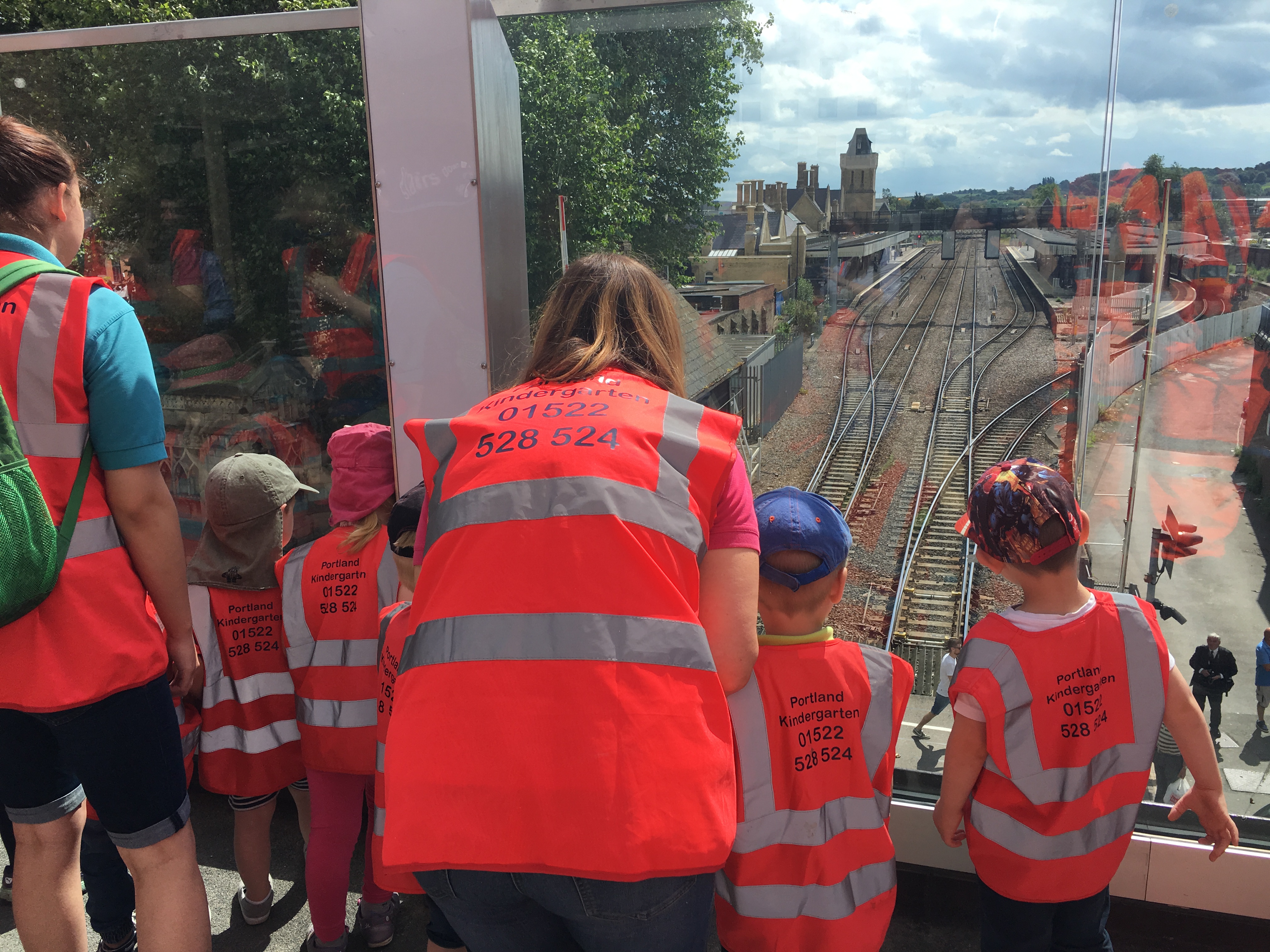 Portland Kindergarten admire the view from Lincoln footbridge.JPG