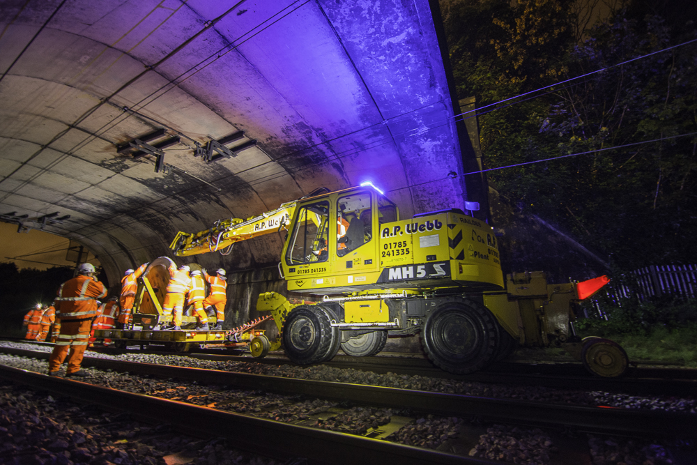 Replacing cable on the West Coast main line in Staffordshire after copper thieves stole sections of it