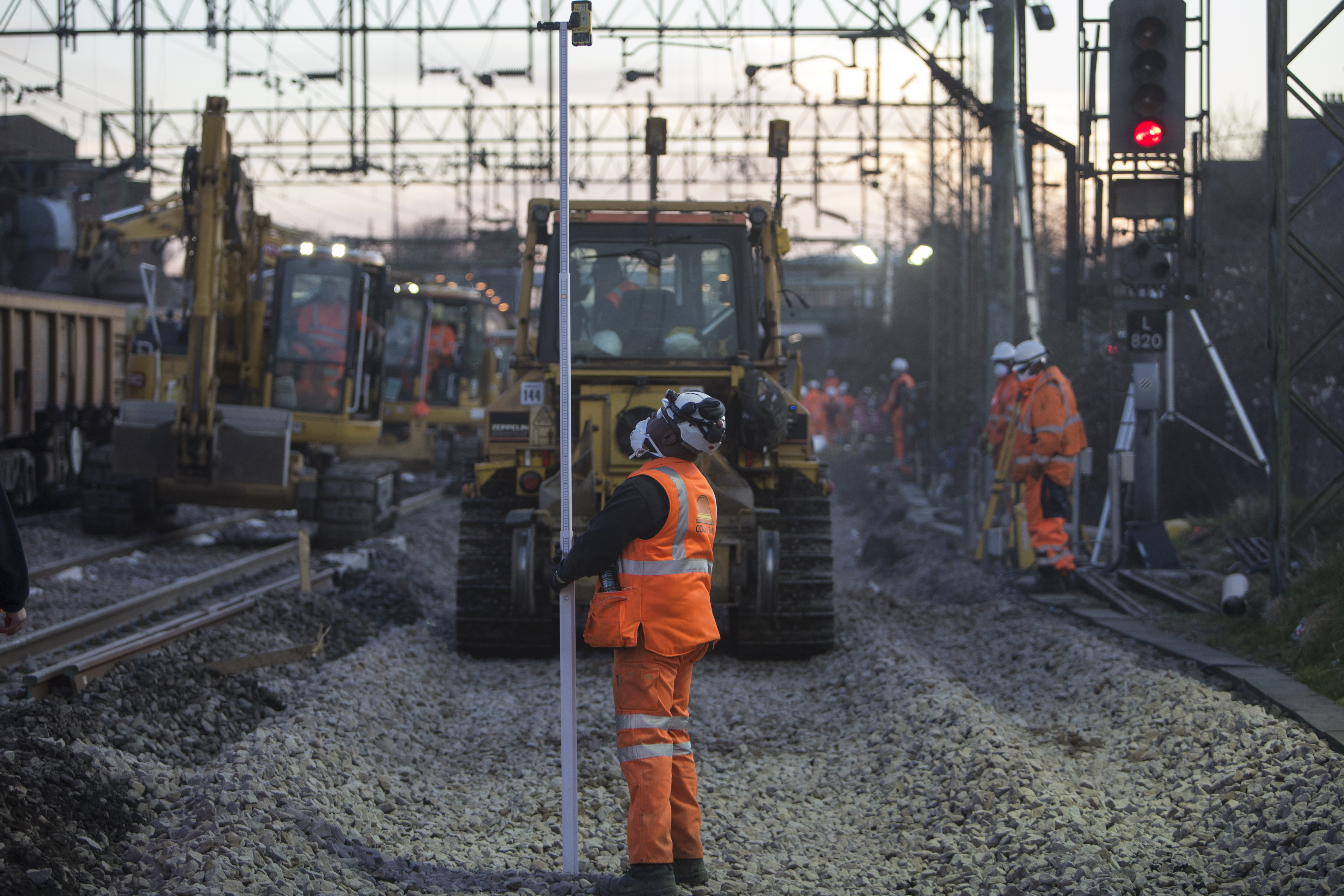 Engineers working to improve the railway at Witham, March 2015