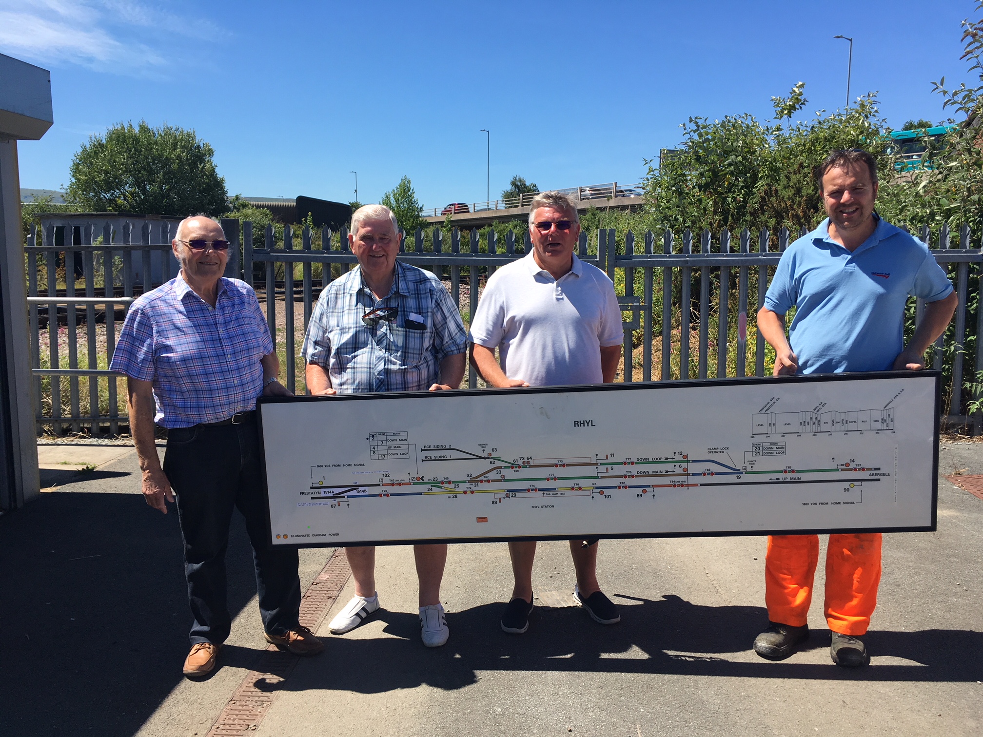 William Jones, Network Rail, handed over the signal box diagram to Rhyl & District Model Railway Club members Winston Roberts, Arthur Airey and Stephen Cooper