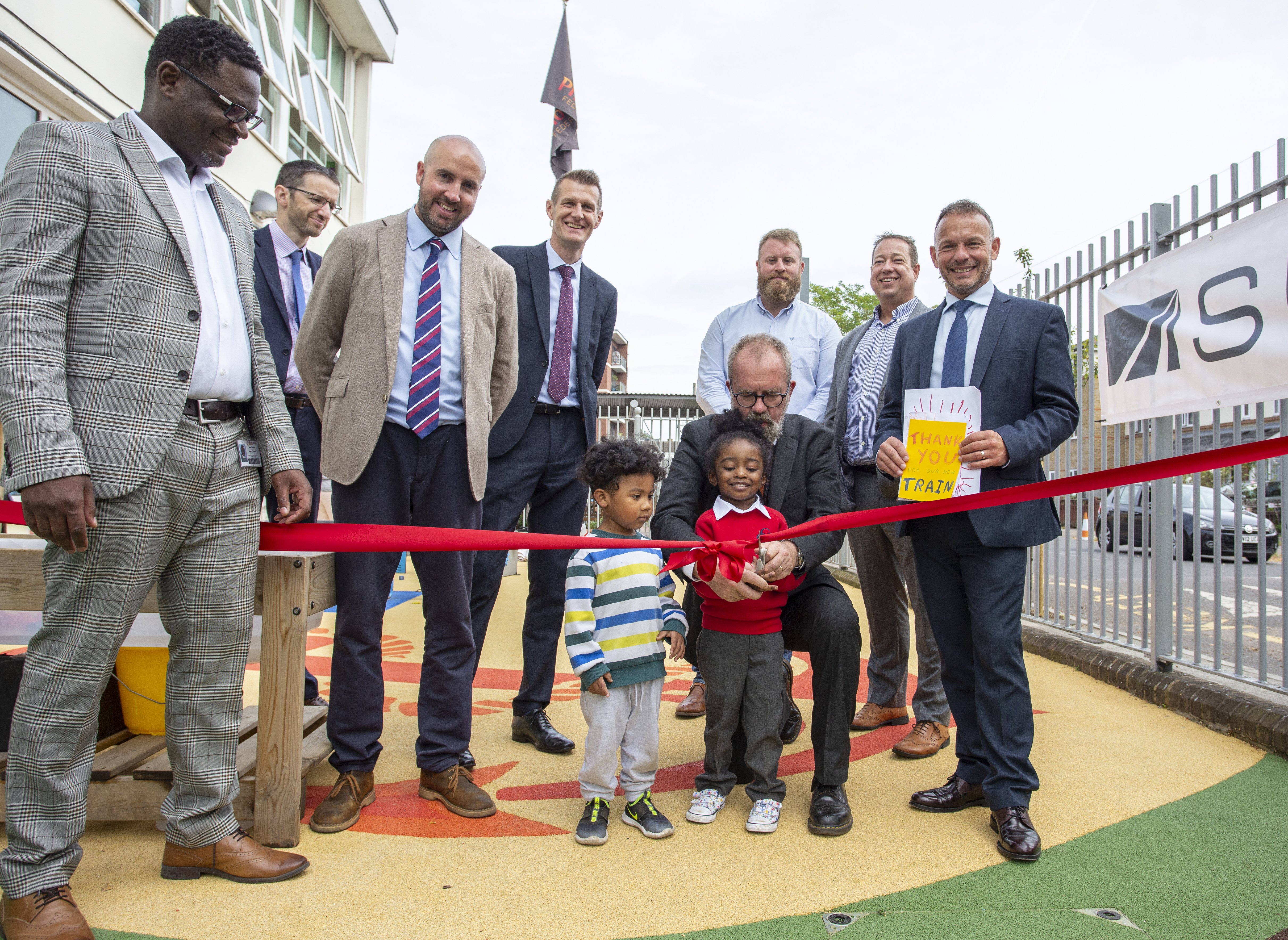 Cutting the ribbon to open the new playground at Grinling Gibbons school, Deptford