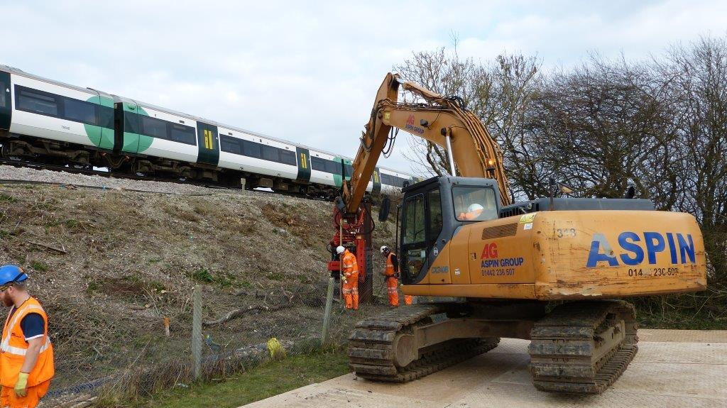 The first sheet piles go into the embankment at Ripe, Sussex