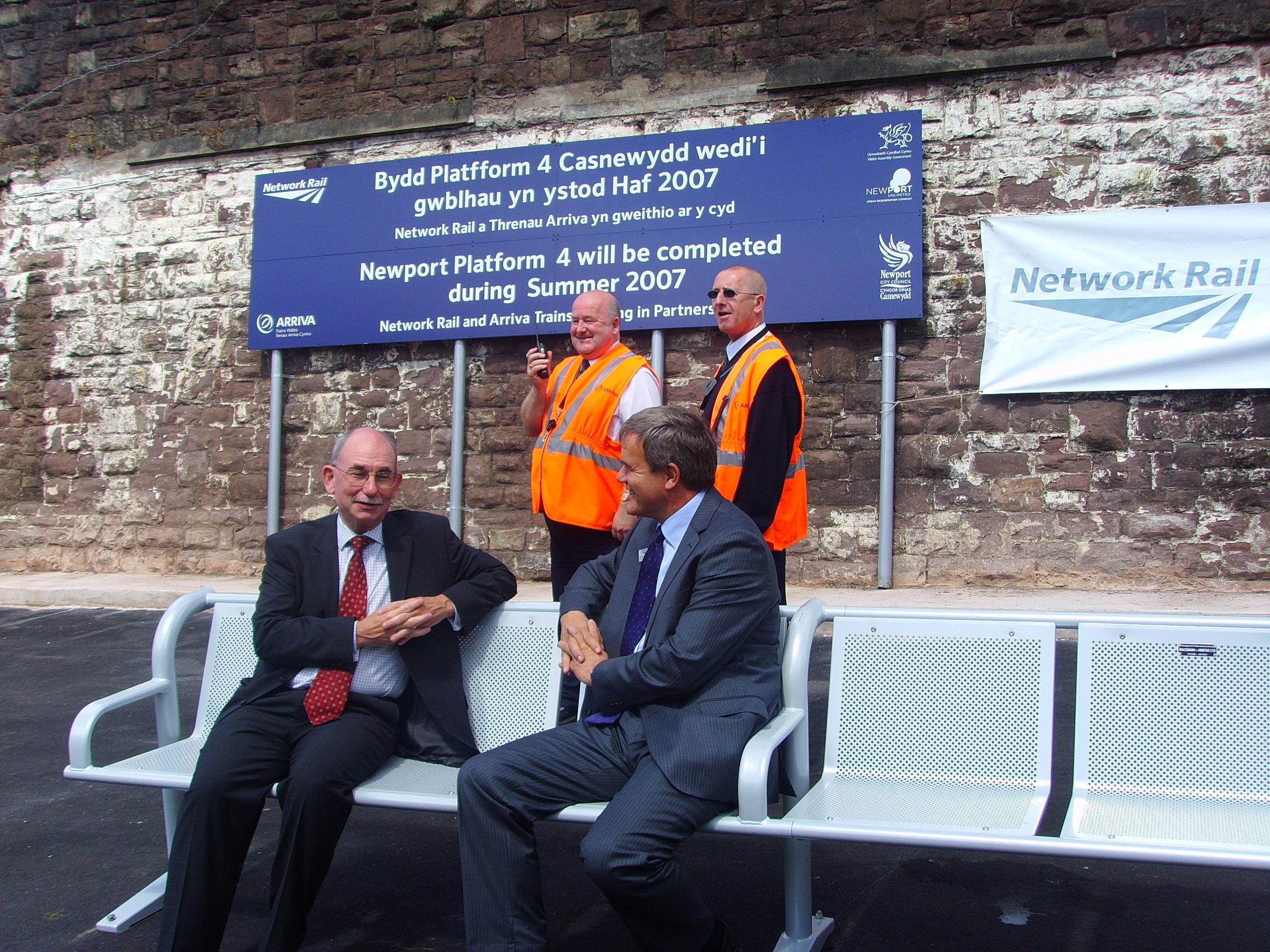 Robbie Burns and Dr. Brian Gibbons on Platform 4 at Newport station