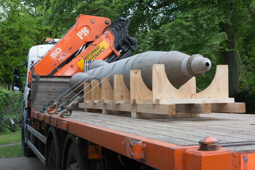 Replica World War II V2 rocket on delivery vehicle
