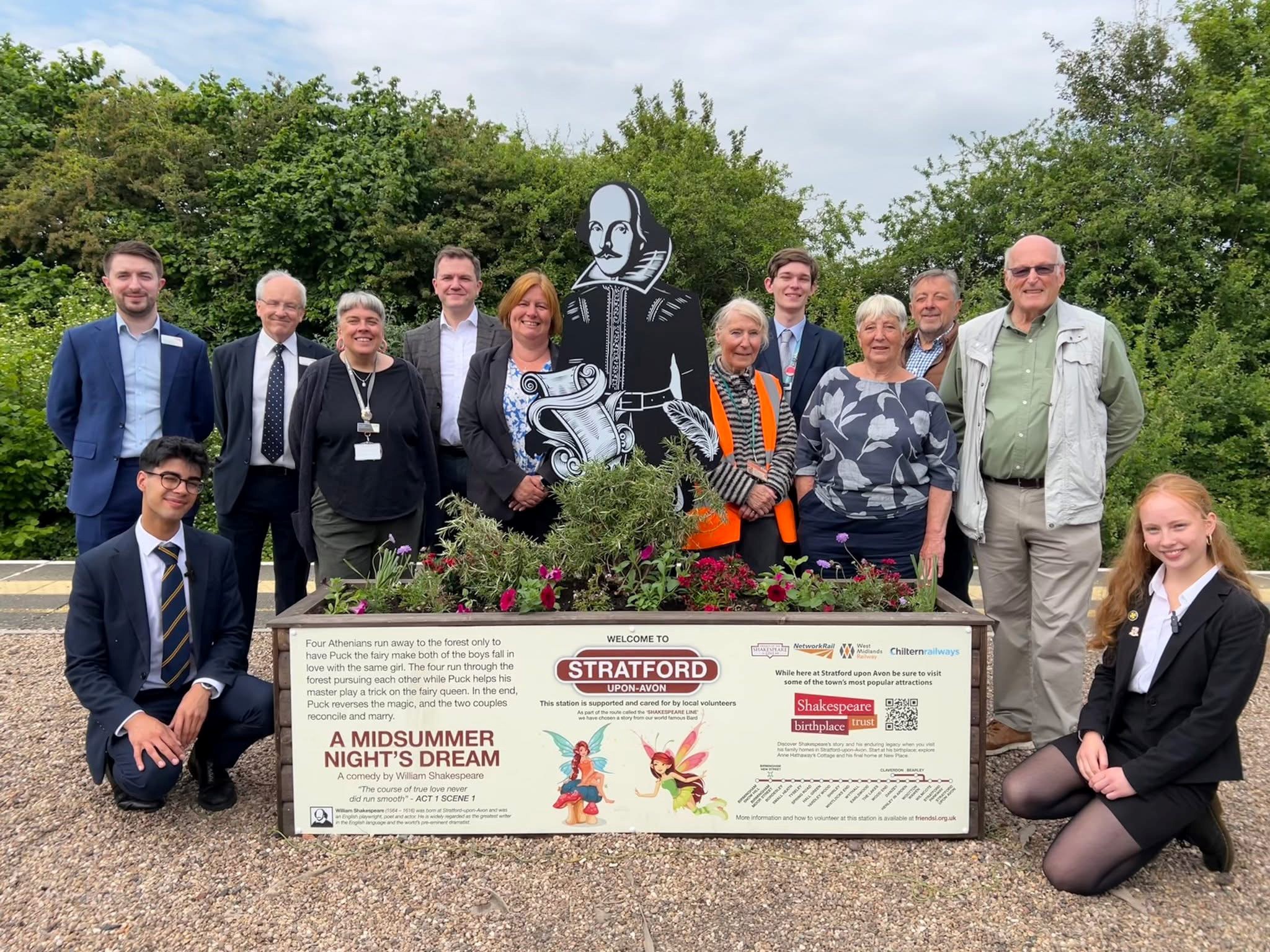 Partners celebrating the unveiling of the Stratford-Upon-Avon Shakespeare statue