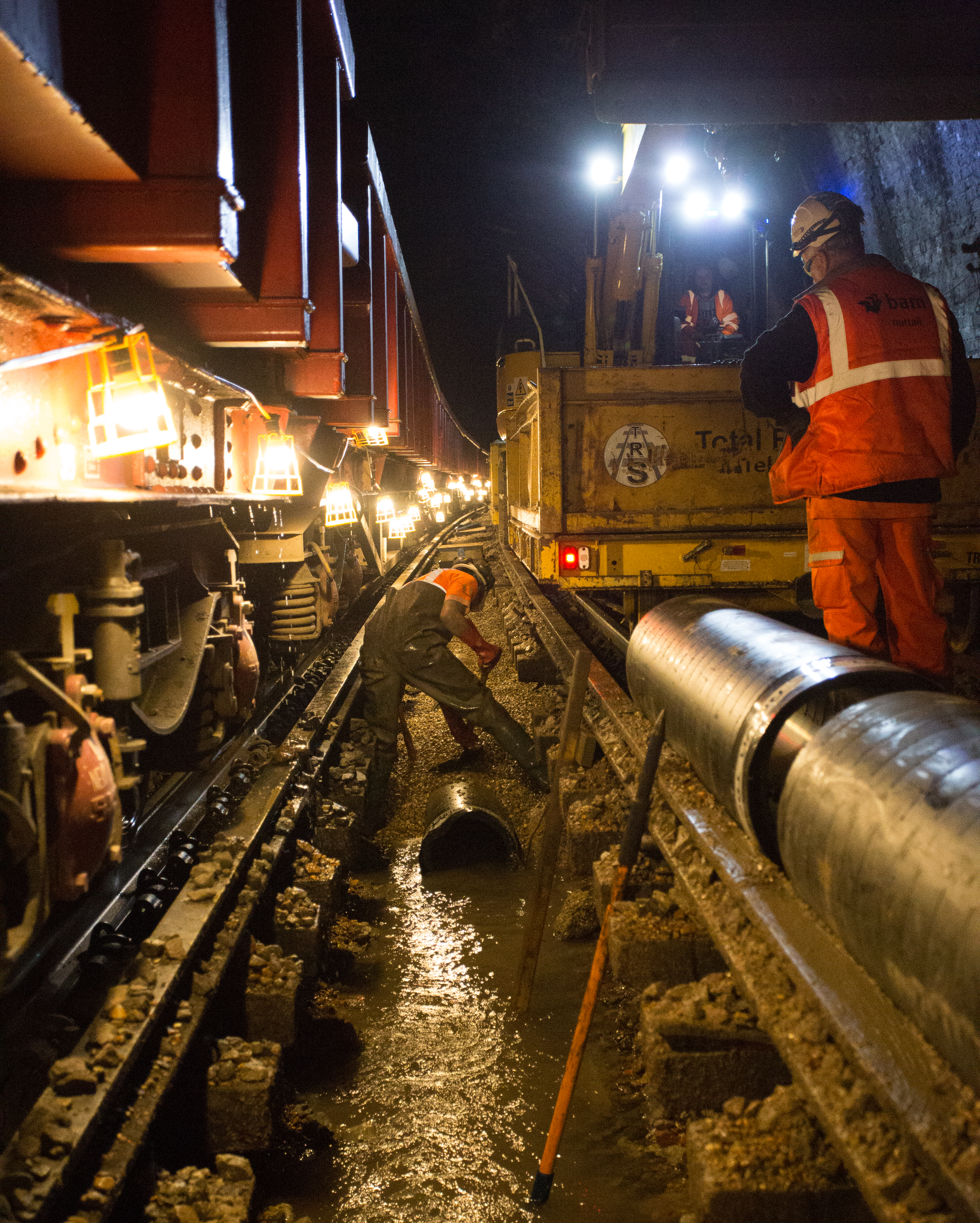 Burying the new drainage pipes in the depths of Sevenoaks Tunnel