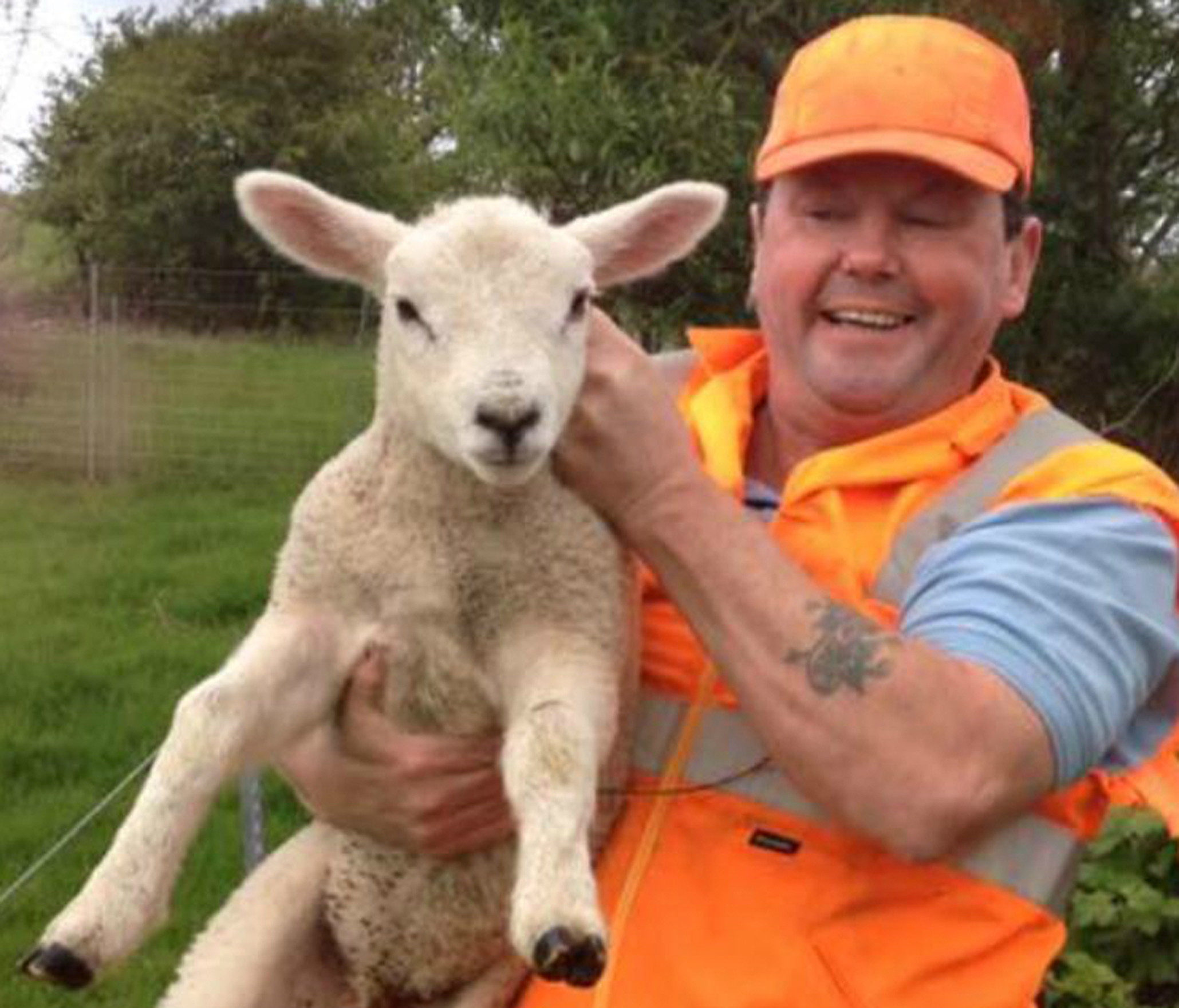 Robert Ratsey with Swaledale sheep during dry-stone wall work