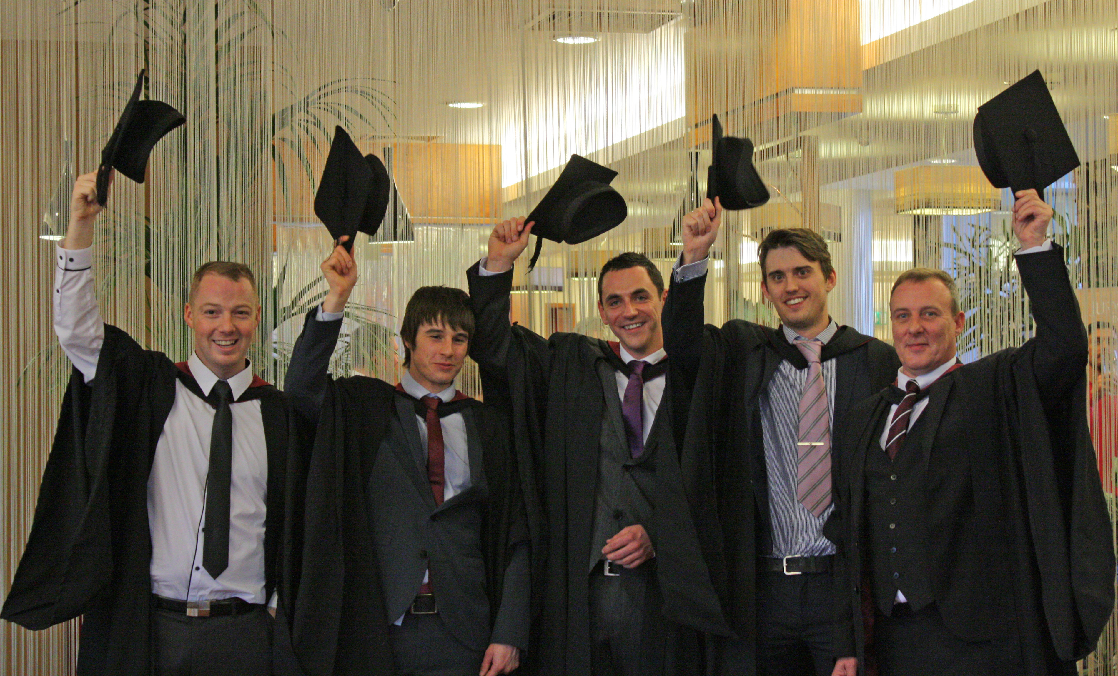 Network Rail employees celebrate their success after achieving foundation degrees in engineering at Sheffield Hallam University graduation - Nov 2012