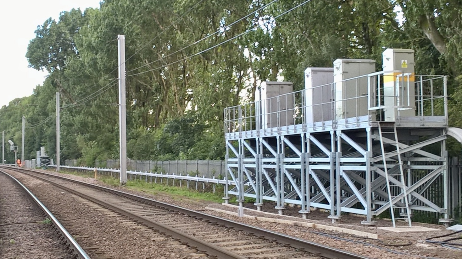 Signalling cabinets on stilts at Caldew junction 2