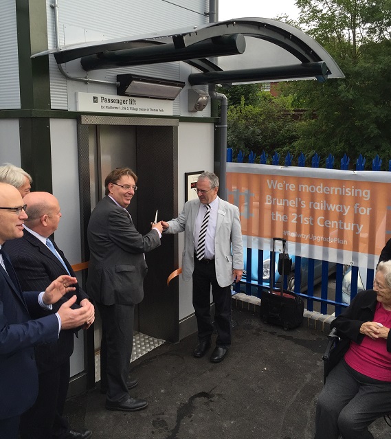 Network Rail chairman Sir Peter Hendy & John Howell MP open lifts at Goring & Streatley station