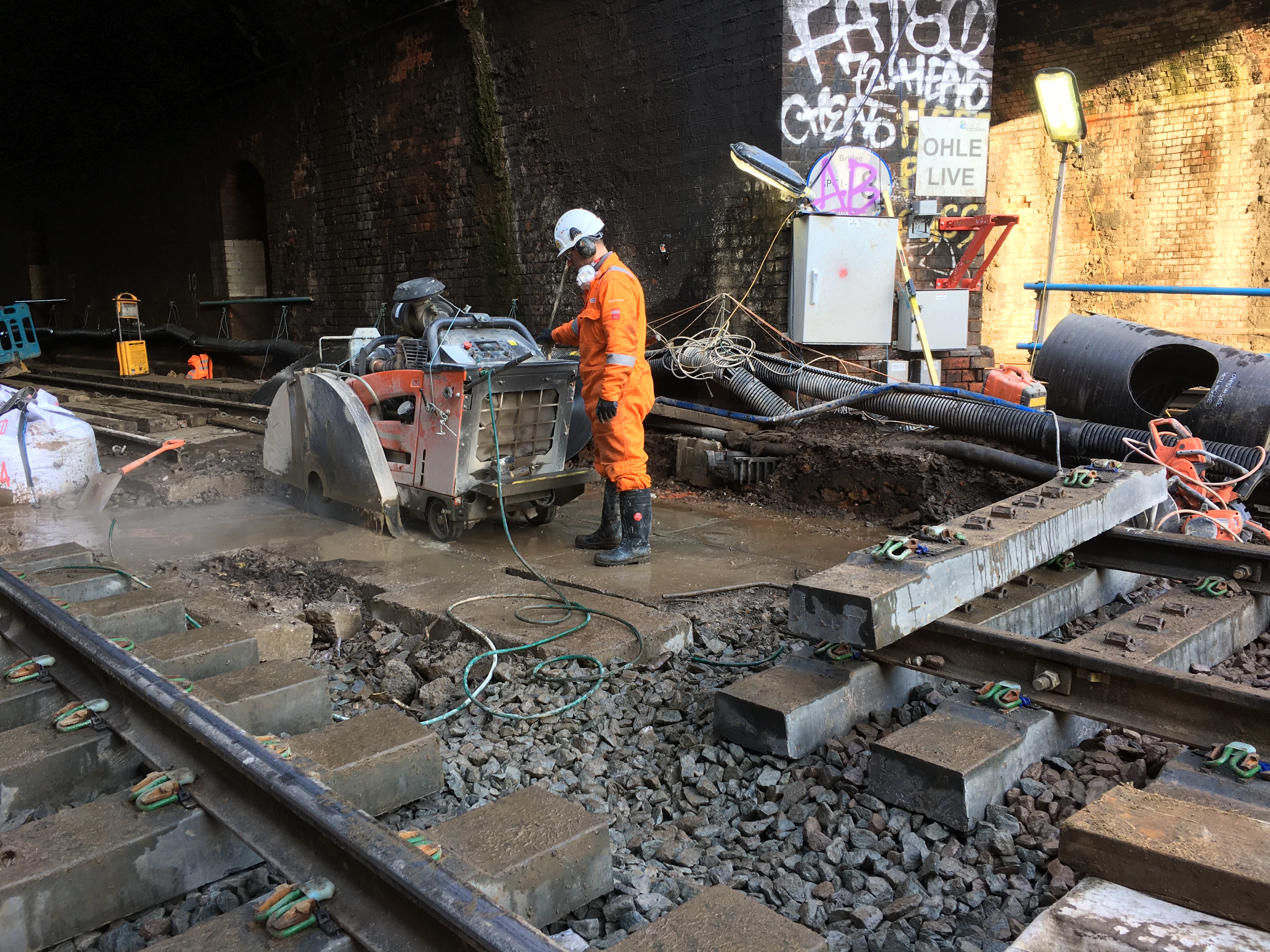 Slab track renewal taking place at Kentish Town, Camden, on 28 December 2017 (3)