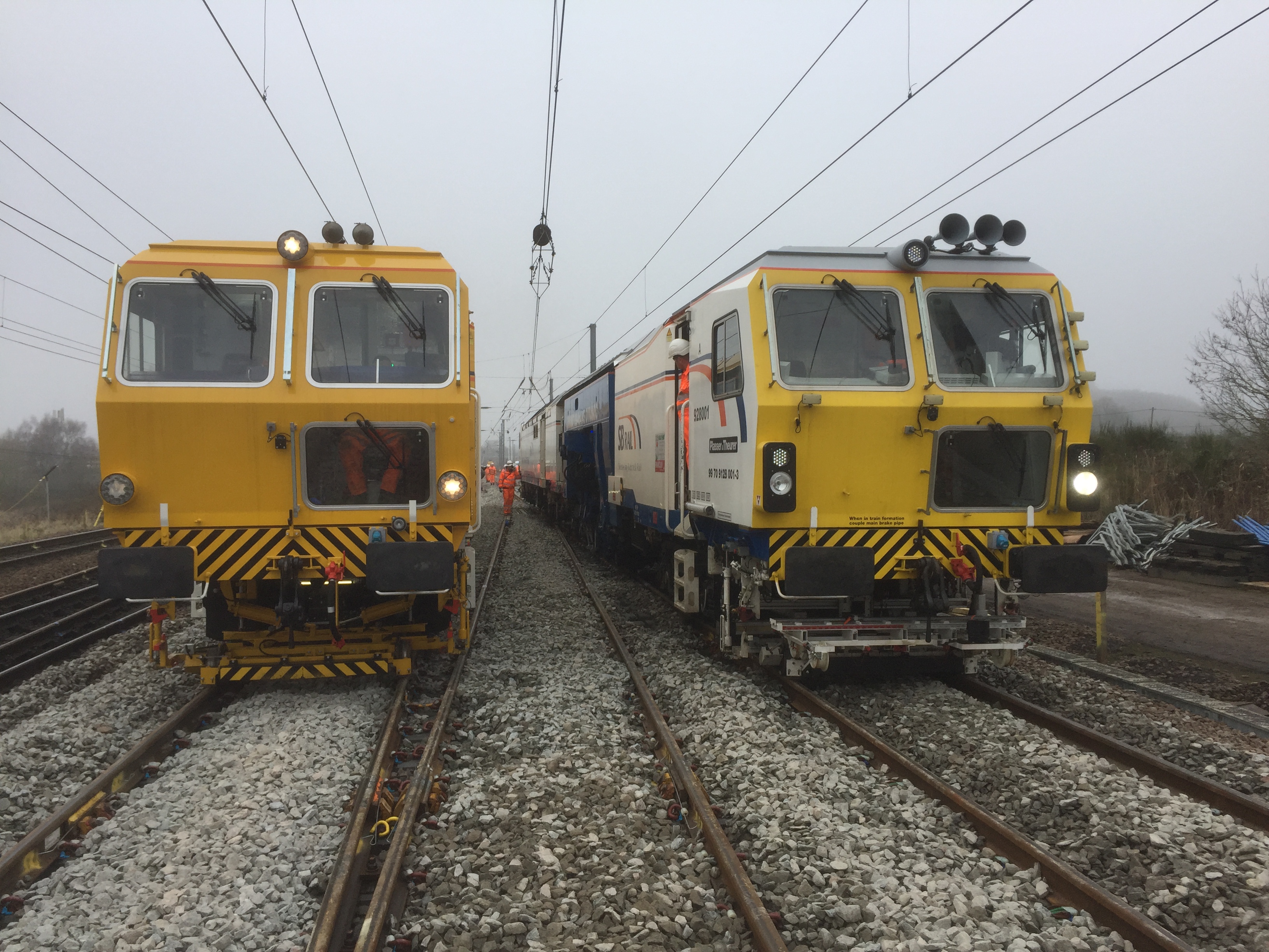 Parallel tamping - two 09 4s combined Dynamic Track Stabiliser (DTS) tampers. Part of the high speed handback programme