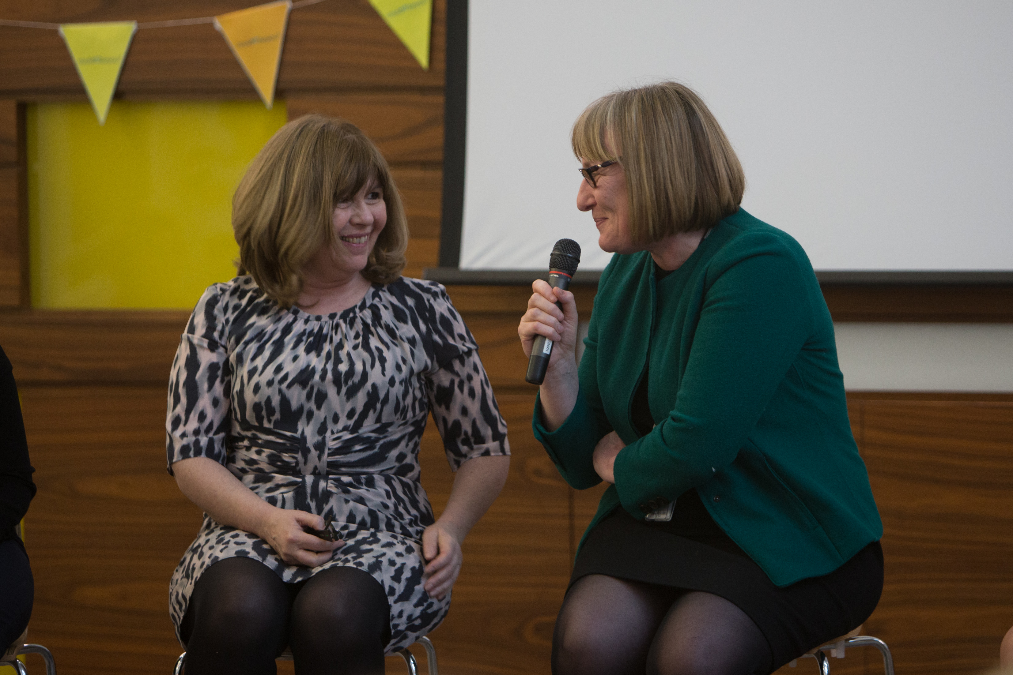 TeenTech founder Maggie Philbin and Network Rail Group CIO Susan Cooklin talk to finalists at Network Rail's Could IT Be You IT for girls competition event 3