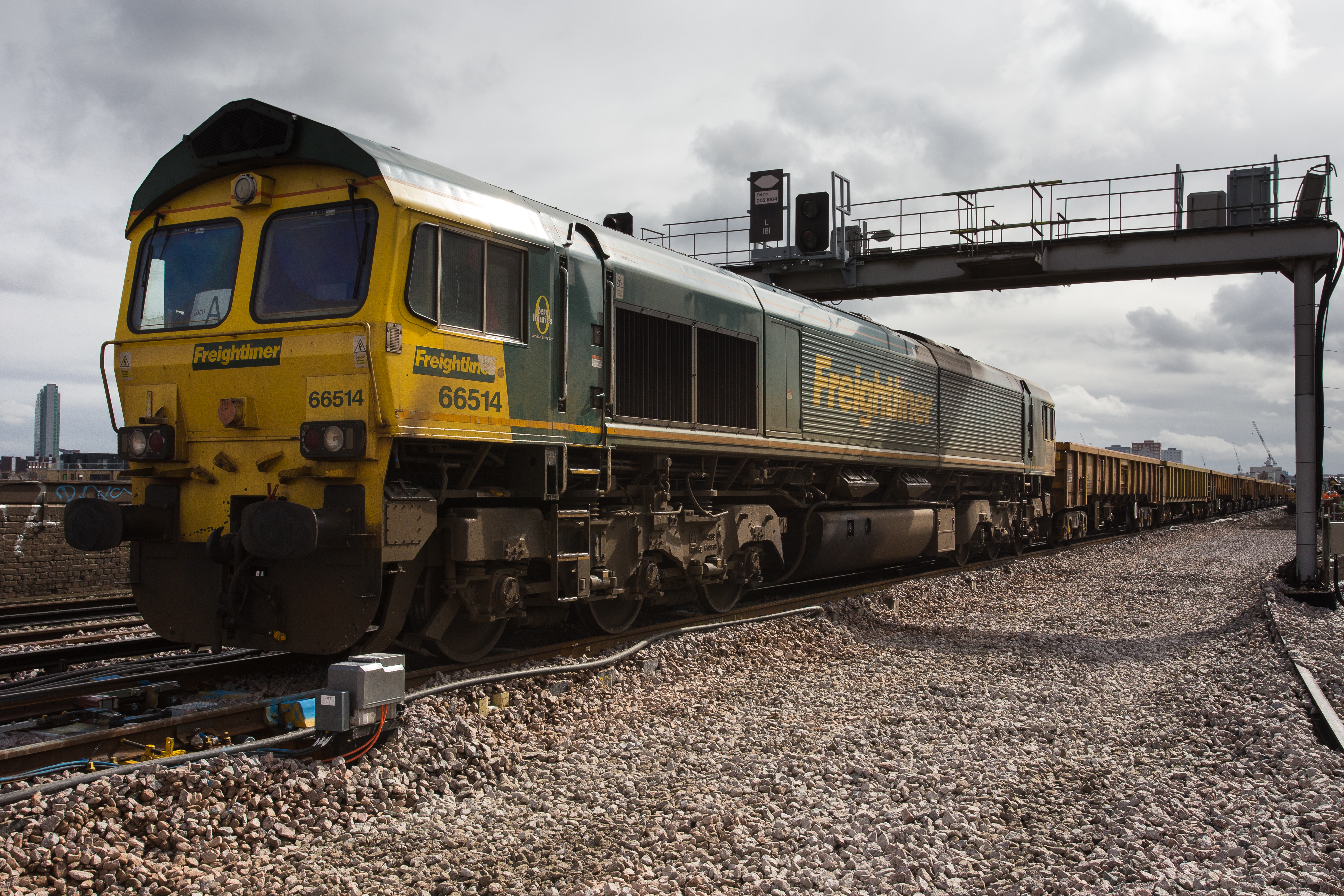 Engineering train carrying spent ballast. Paul Clark monitors these for the Thameslink Programme