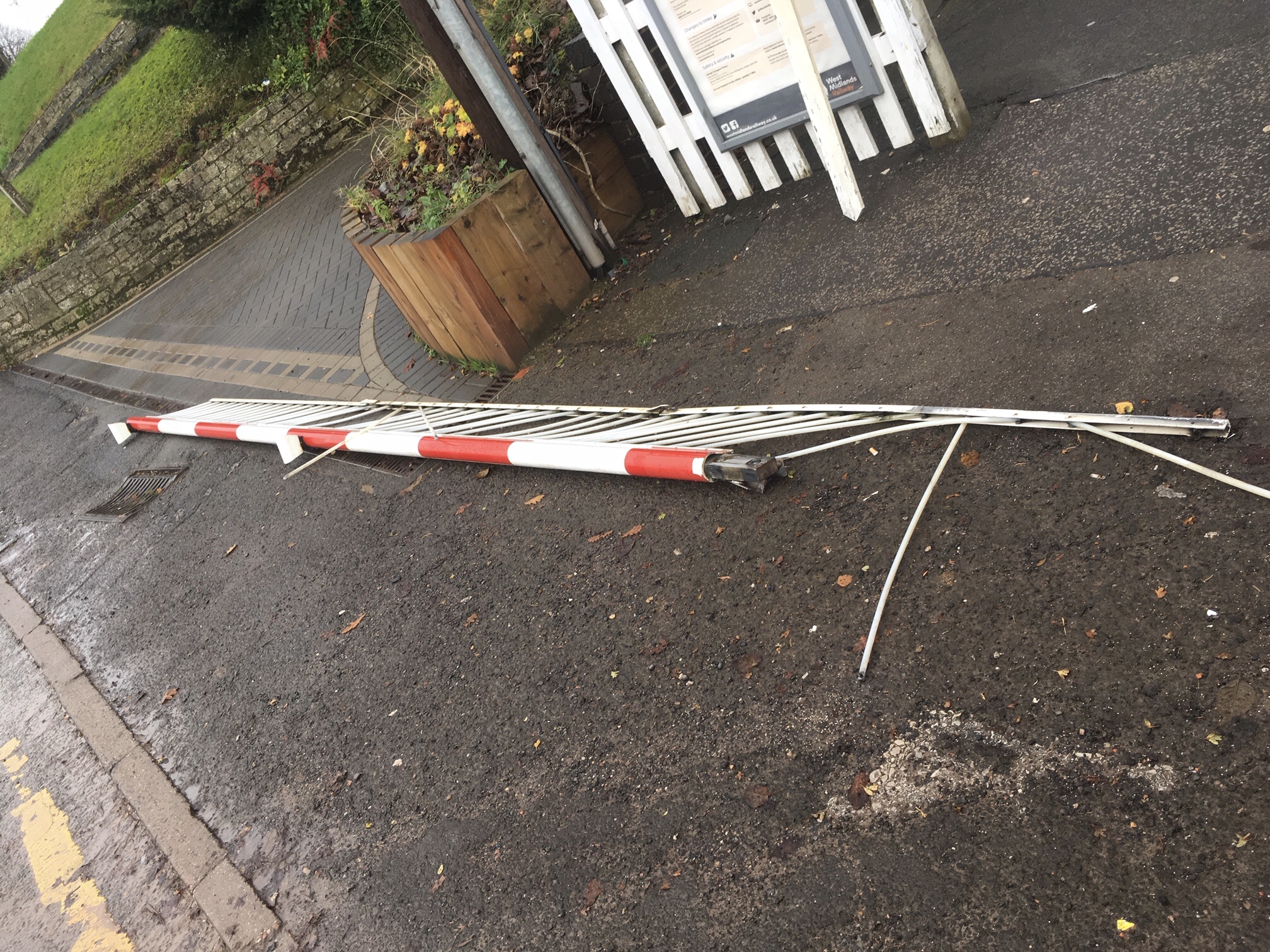 The damaged barrier left on the roadside after being hit by lorry in Hartlebury