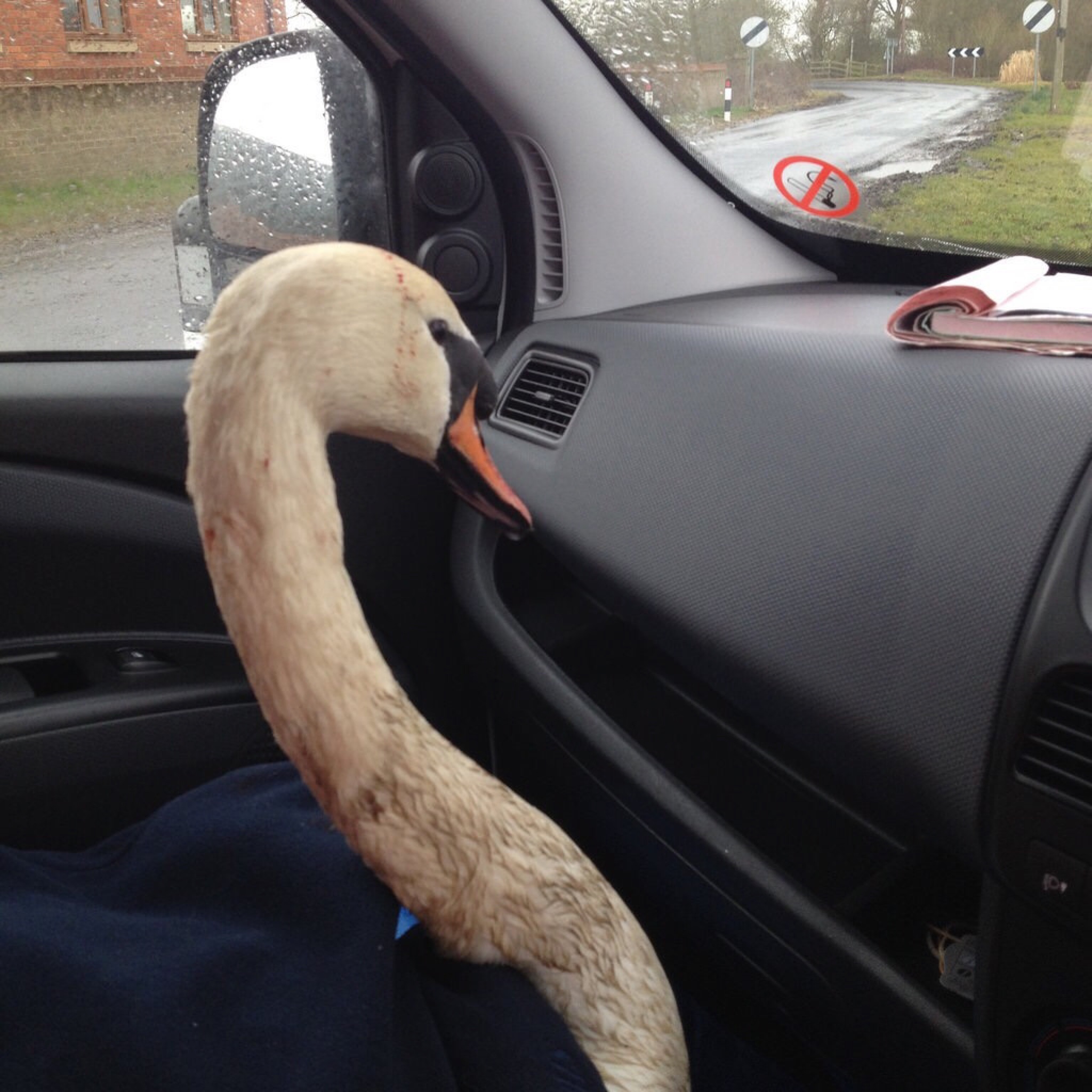 The injured swan got ride to the Yorkshire Swan and Wildlife Rescue centre
