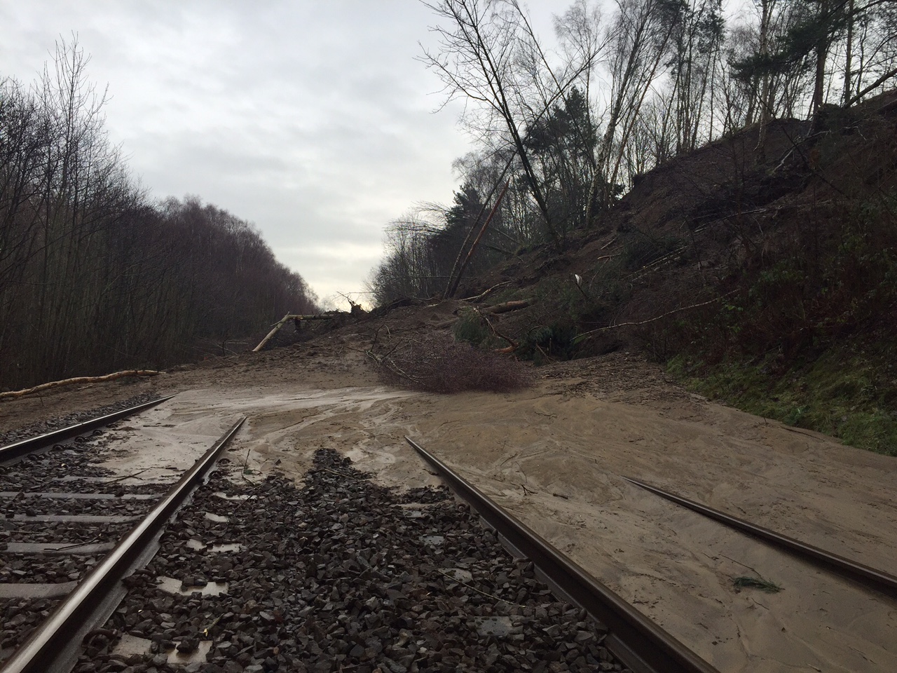 The landslip at Farnley Haugh which is affecting the line between Carlisle and Newcastle