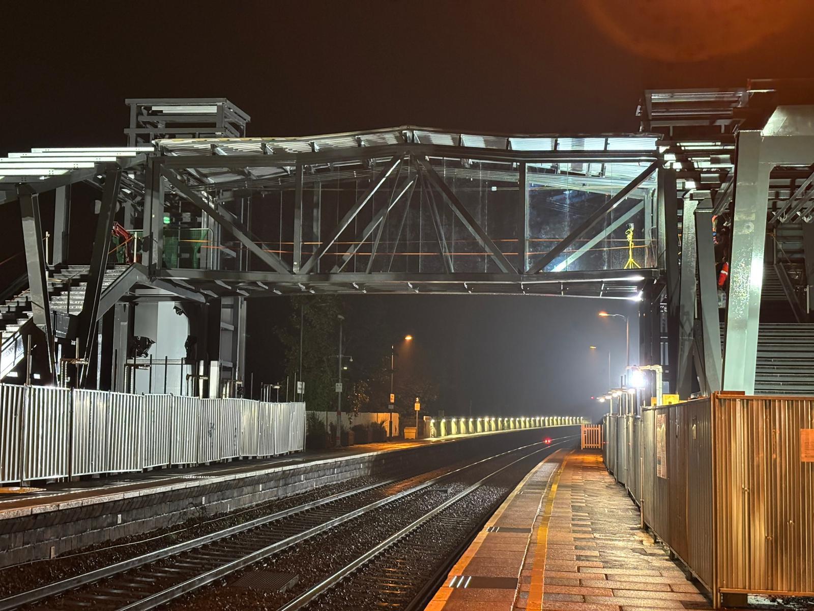 The main span for the new accessible footbridge a Abergavenny has been installed. September 2024.jpeg