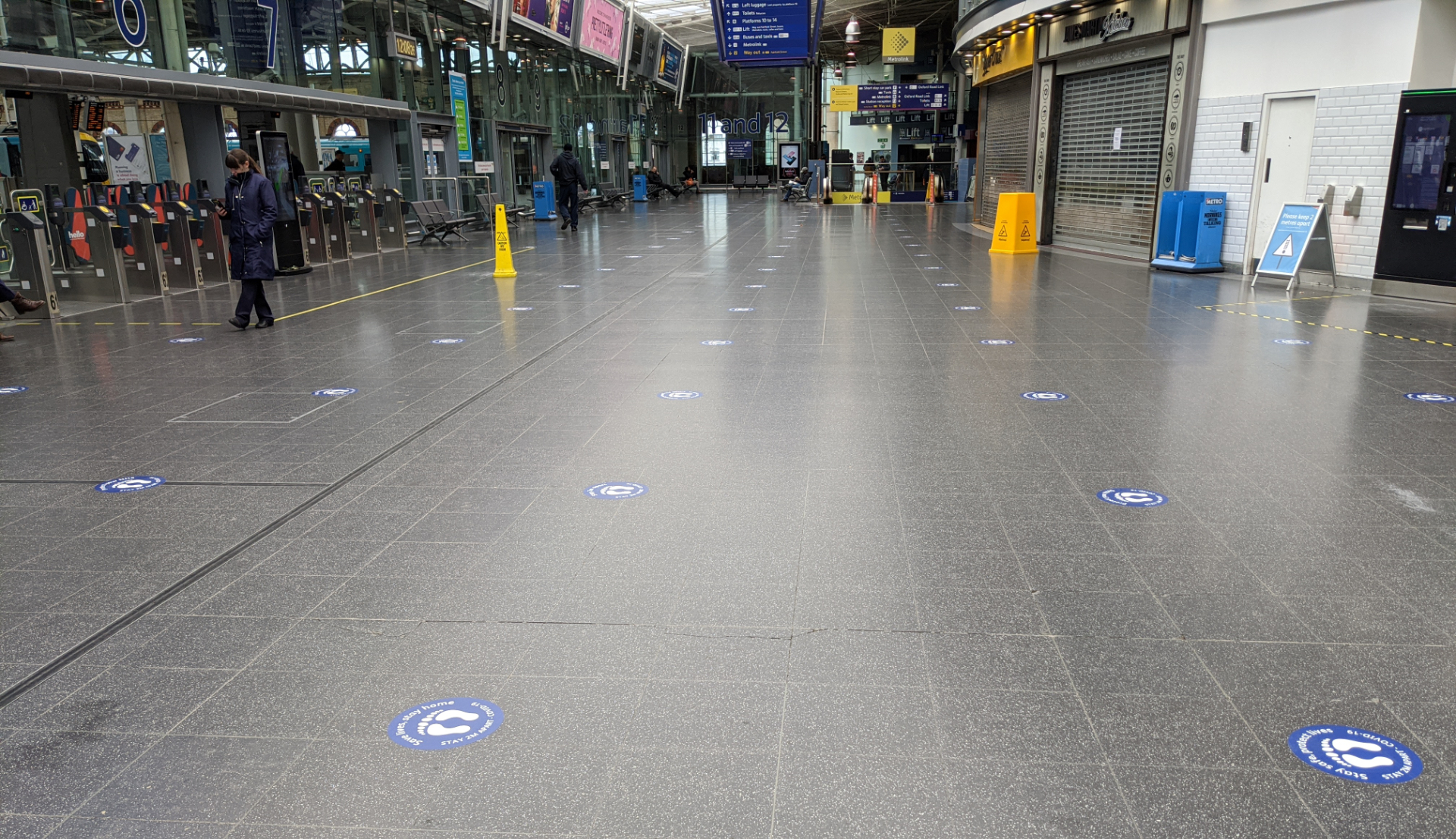 The stickers on the floor of Manchester Piccadilly