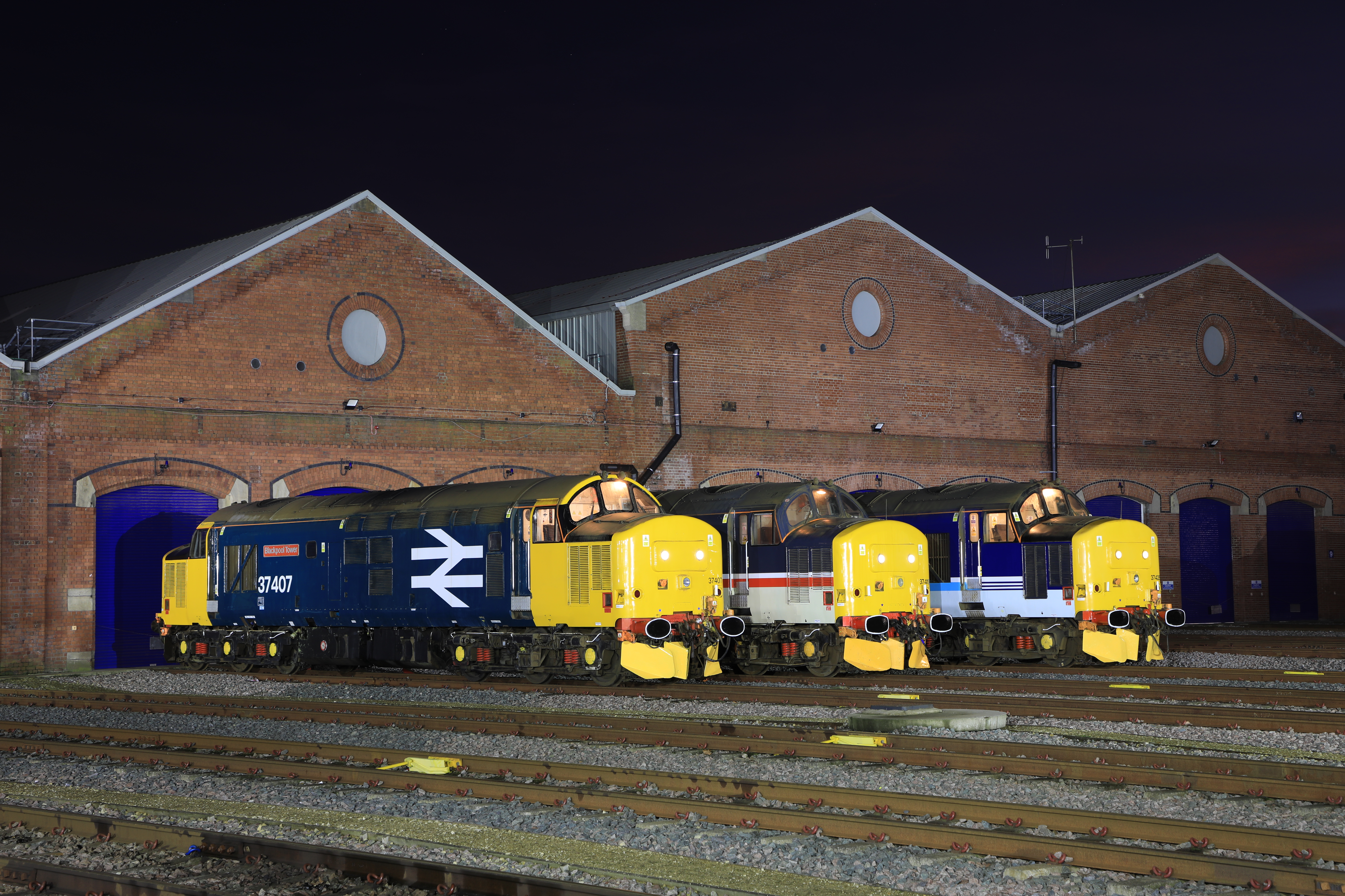 Three Class 37 locos lined up at Holgate Engineering Works, Chris Gee Network Rail (1).JPG