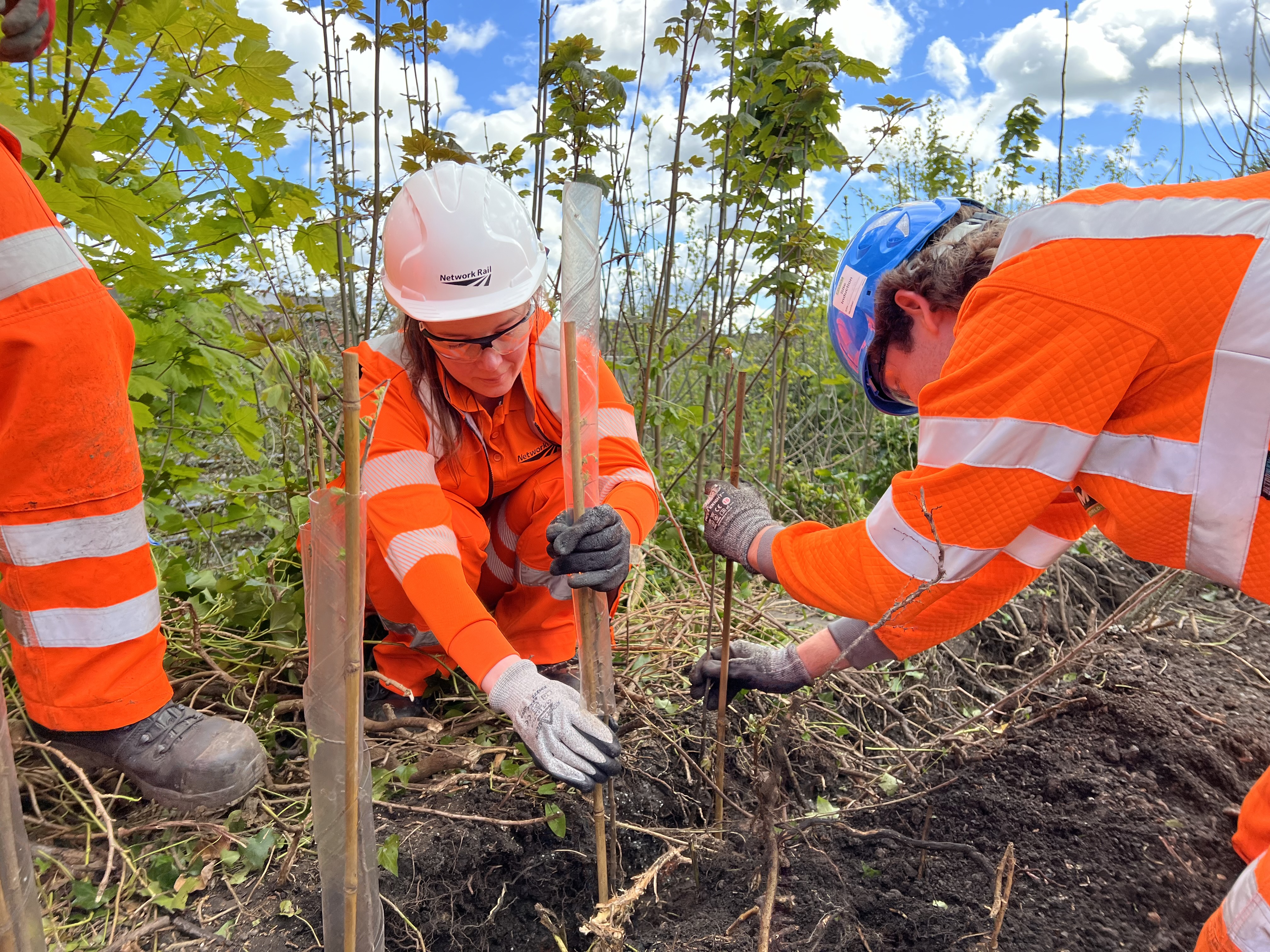 Network Rail planting a new hedgerow at Great Malvern station.jpg