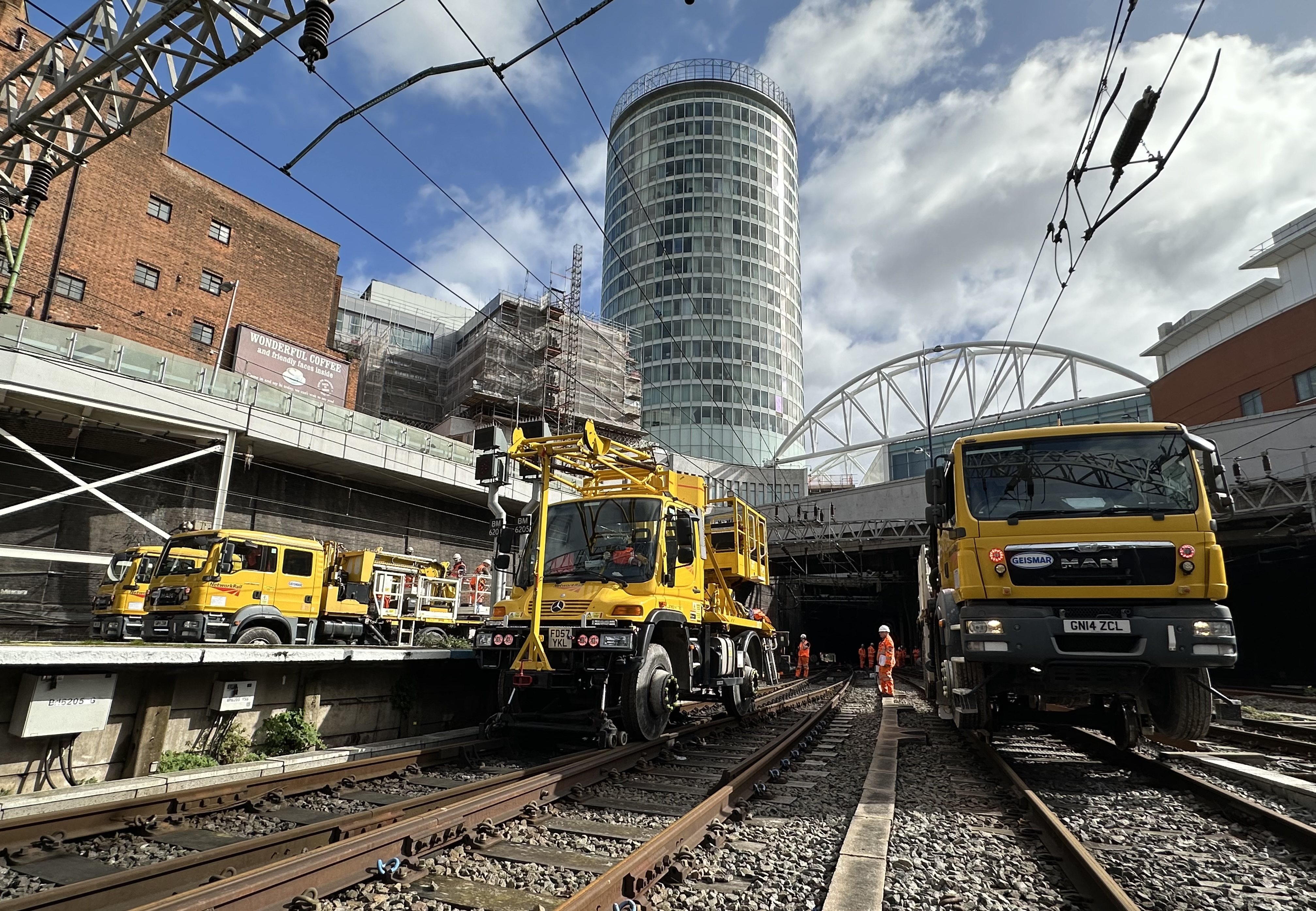 Network Rail maintaining overhead lines at Birmingham New Street station