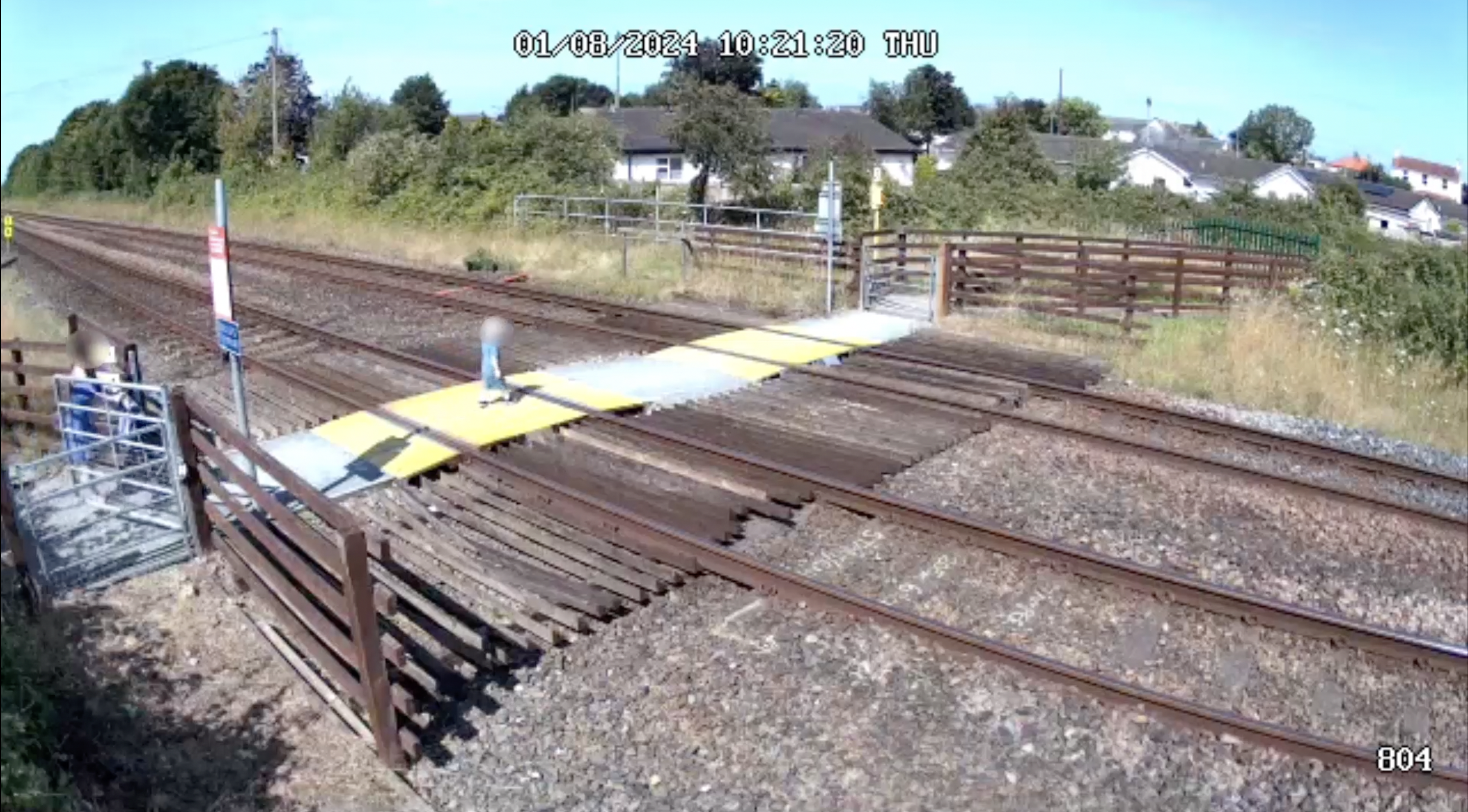 Toddler steps onto Sandy Lane level crossing in Prestatyn, North Wales, before accompanying adult is through the gate.png