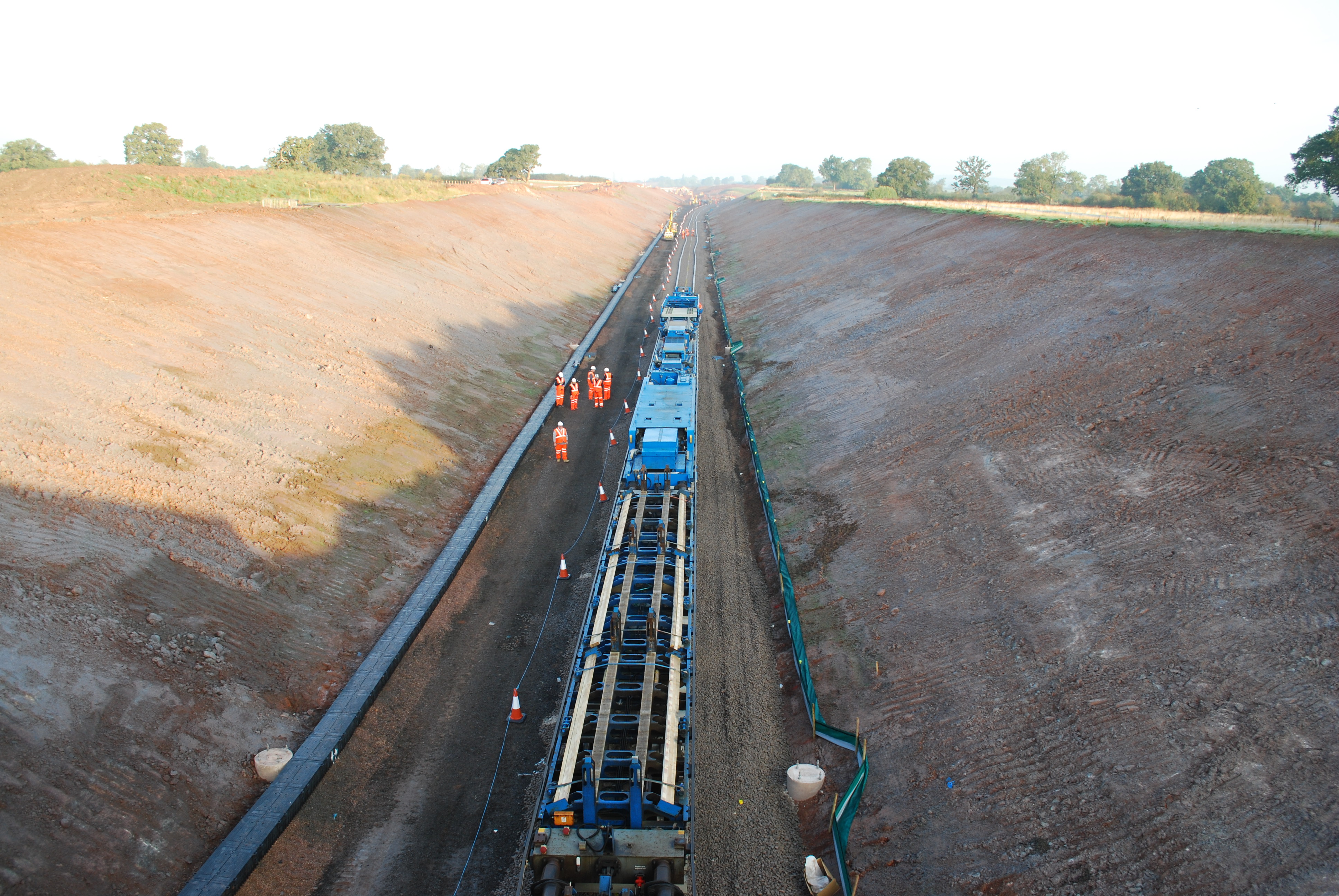 Track-laying machine heading north from bridge three at Norton Bridge.jpg