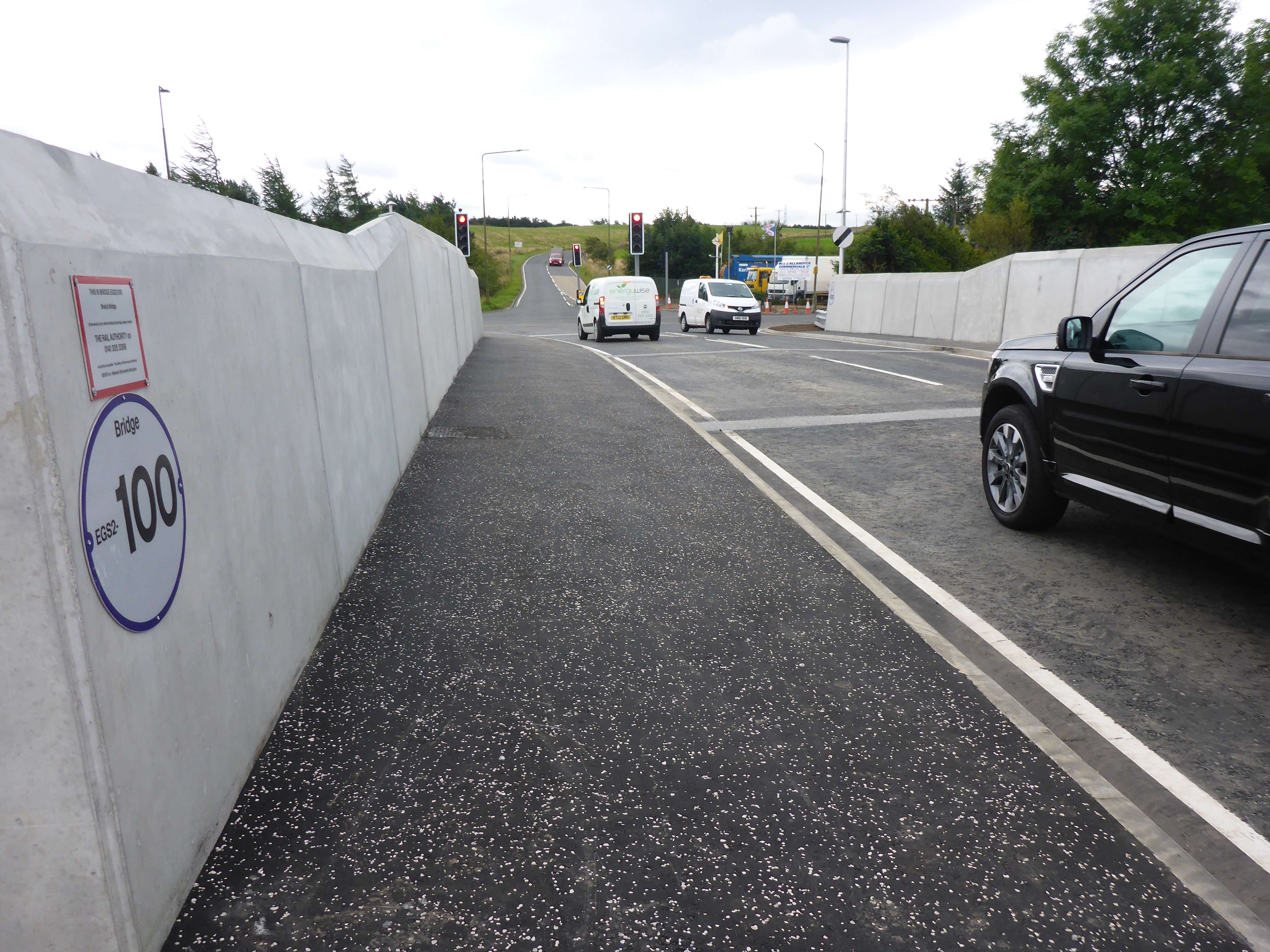 Traffic flowing on the newly re-opened Station Road bridge in Breich.JPG