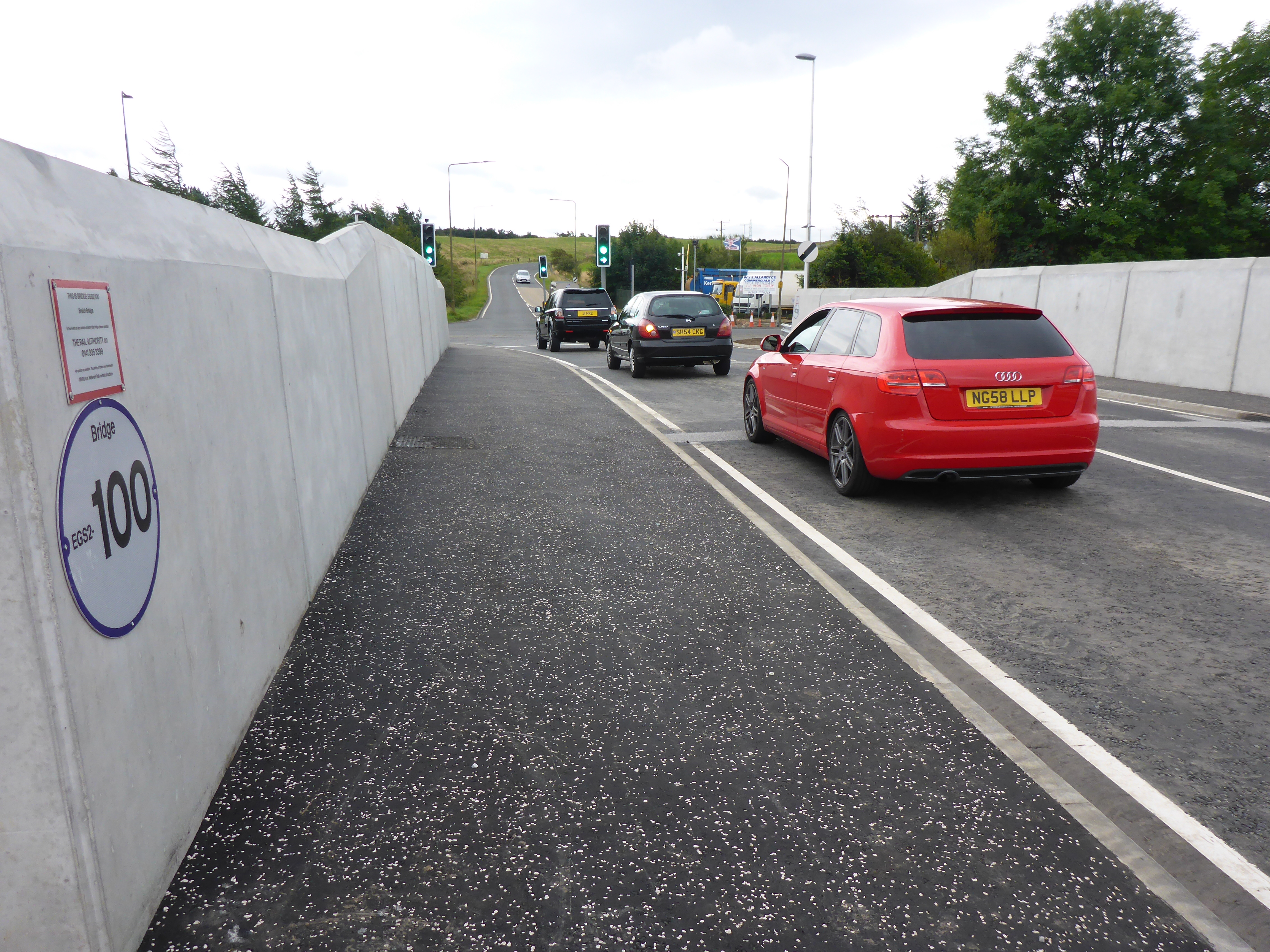 Traffic on re-opened Station Road bridge in Breich.JPG