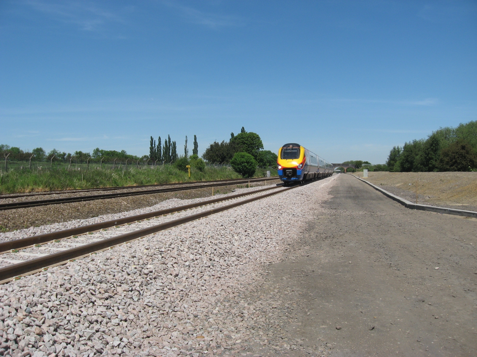 Train running on new 3rd line between Kettering and Harrowden junctions