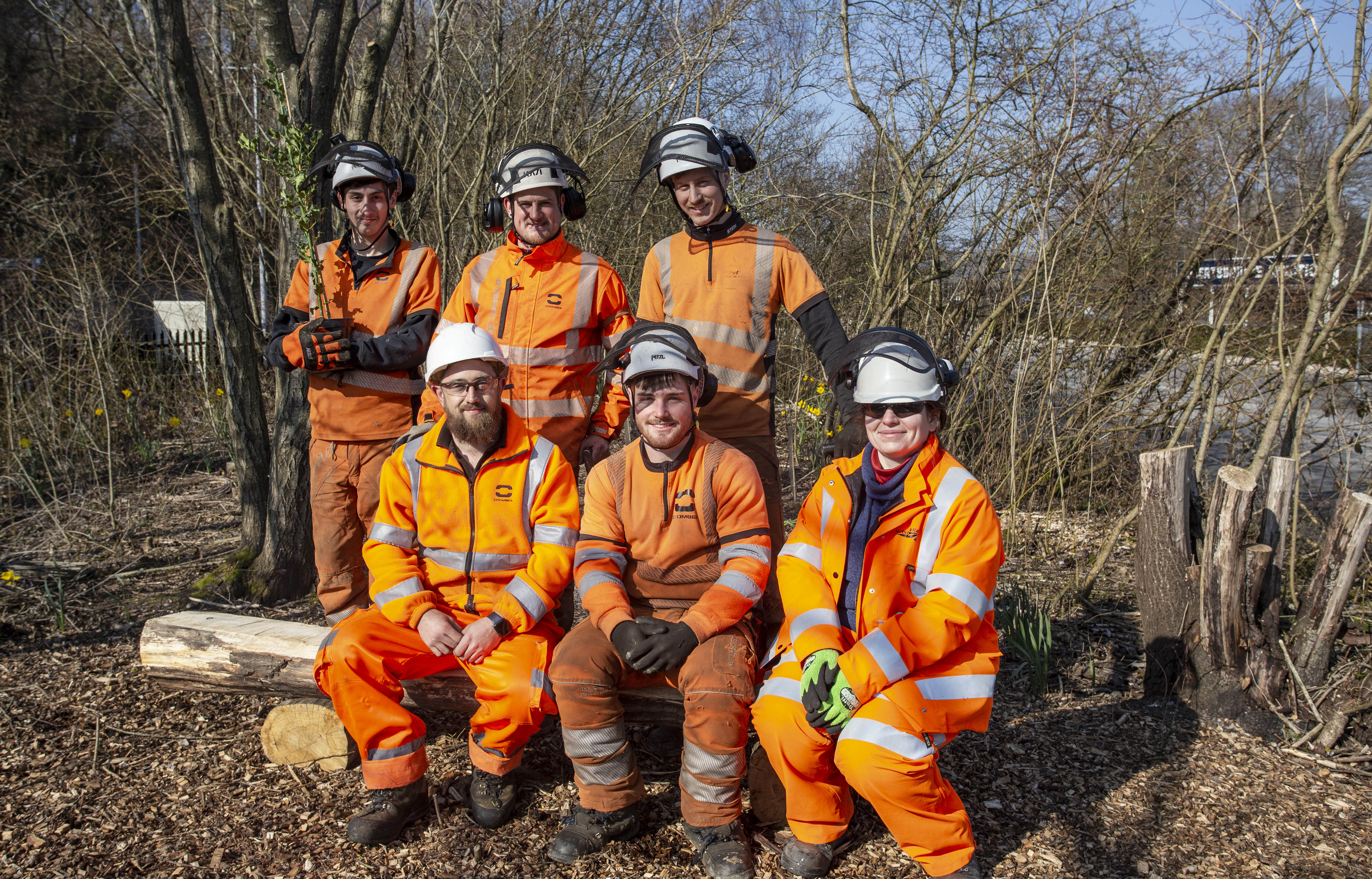 Network Rail ecologist Sophie Mairesse and a team from Coombes working to create a public space with freshly-planted oak trees and holly, at Robertsbridge