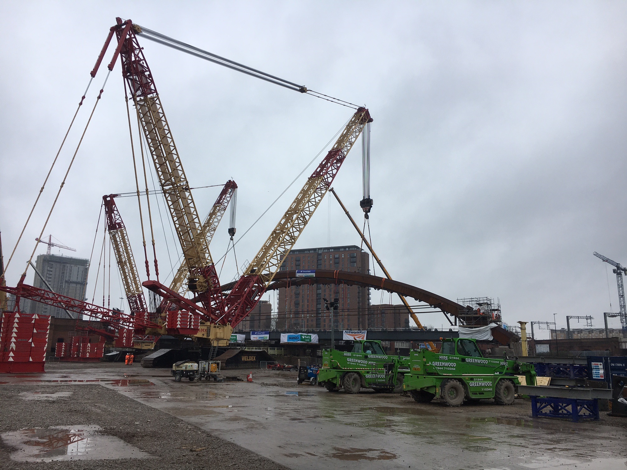Two cranes lifting the Ordsall Chord network arch into place.jpg