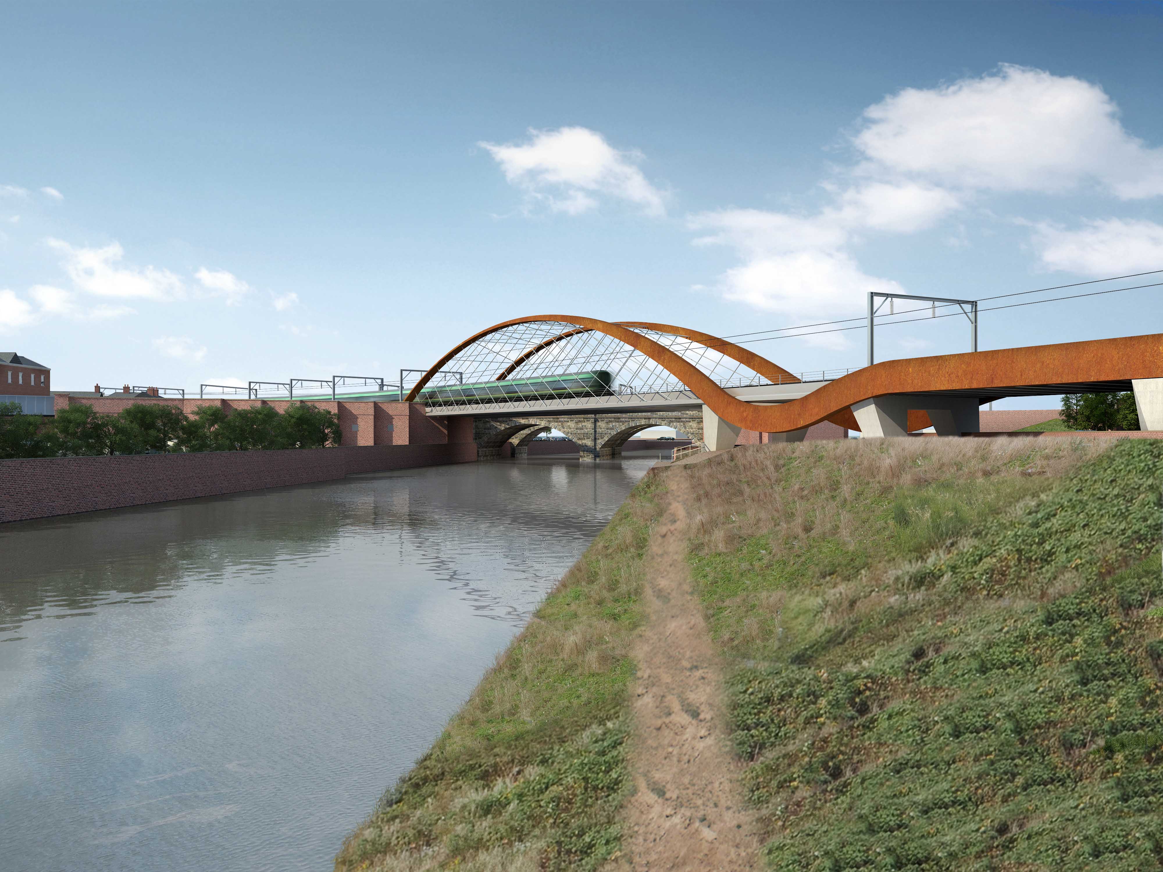 CGI of two possible designs for the Ordsall Chord bridge over the River Irwell, on the Salford/Manchester border.