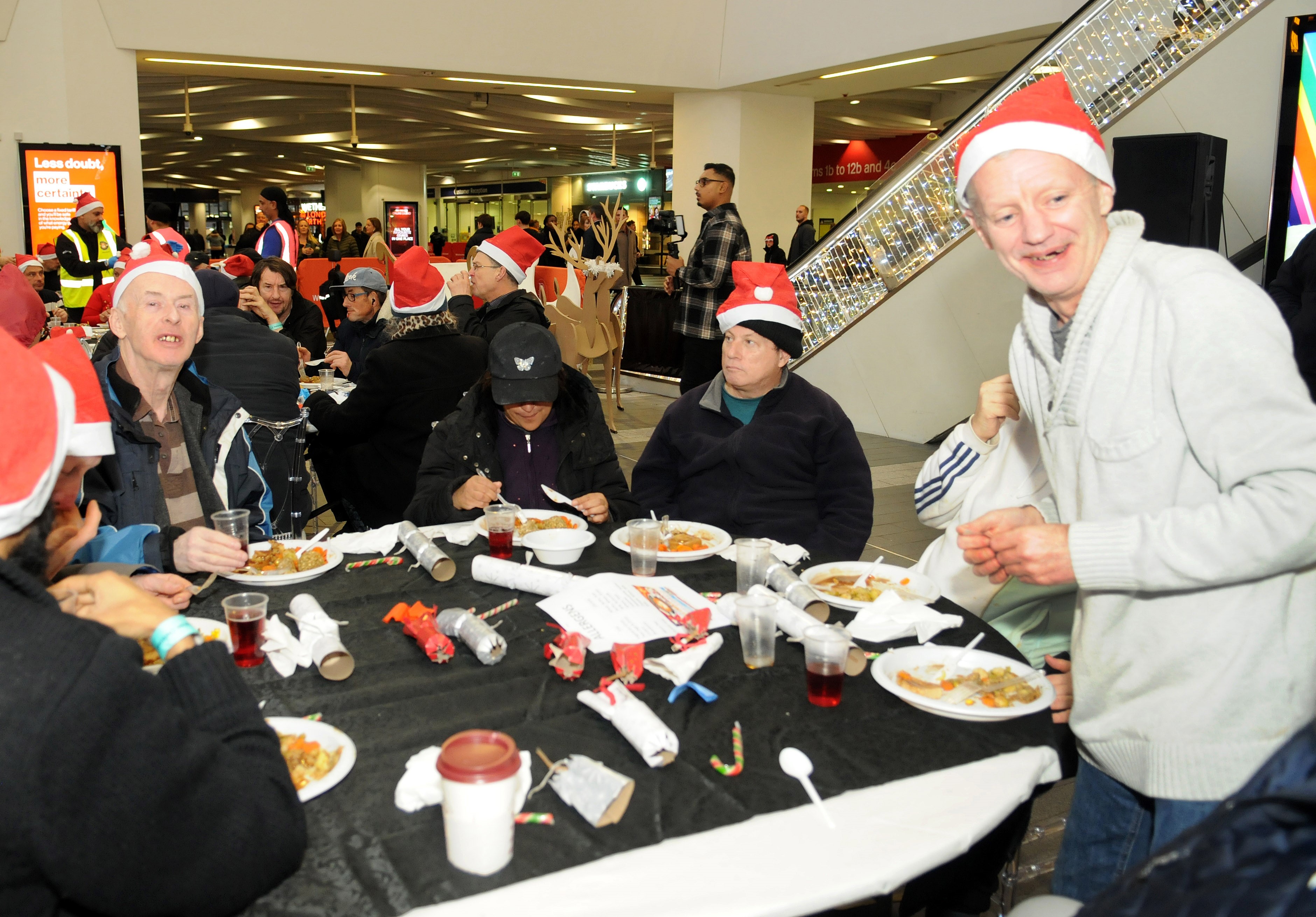 Enjoying a hot meal at Birmingham New Street Christmas Eve 2023