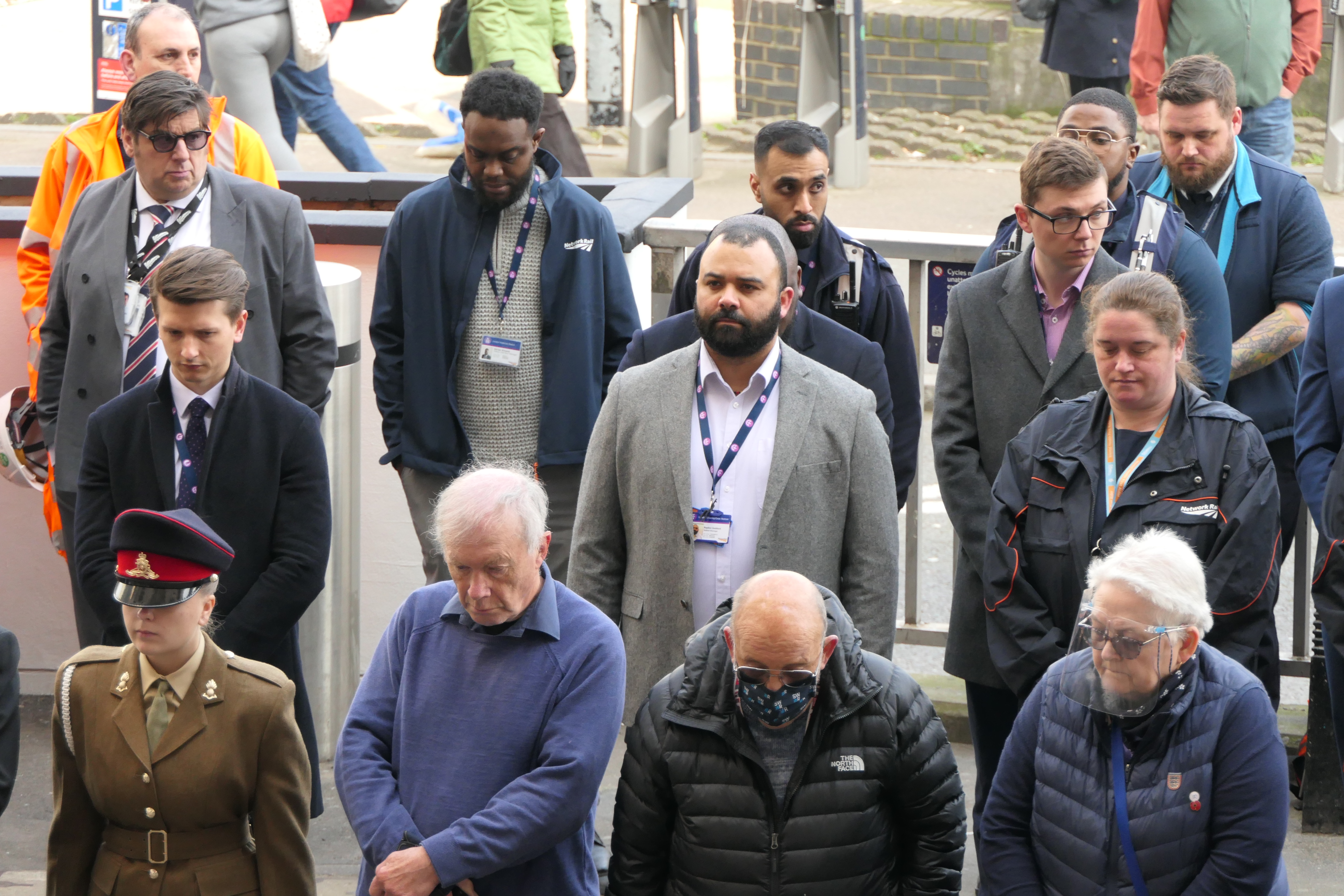Network Rail staff at the rededication of Victory Arch, London Waterloo