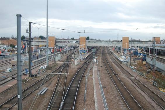 View from Thorpe Road bridge to Peterborough station