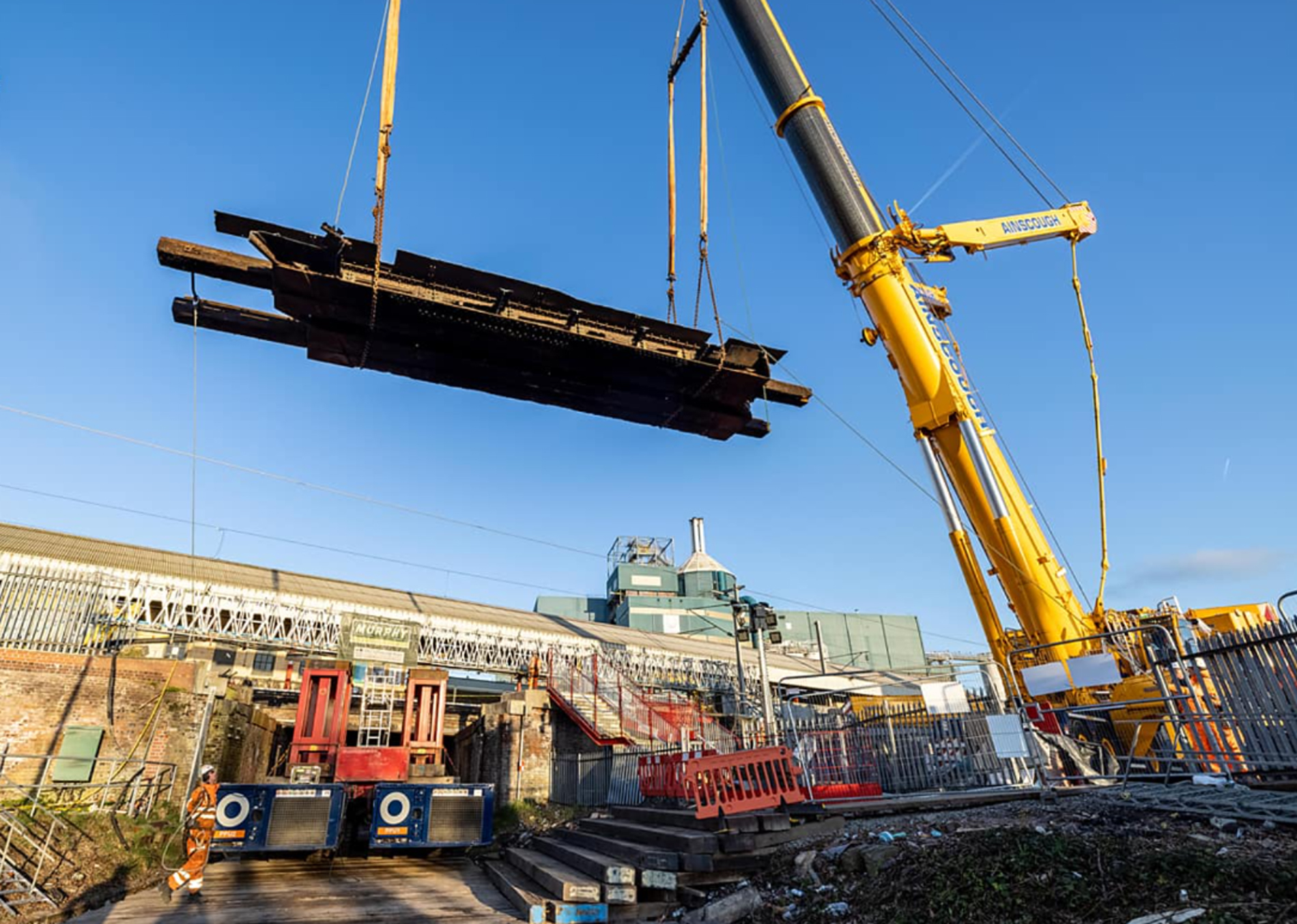 A 750T crane used to remove and replace bridges at Warrington Bank Quay