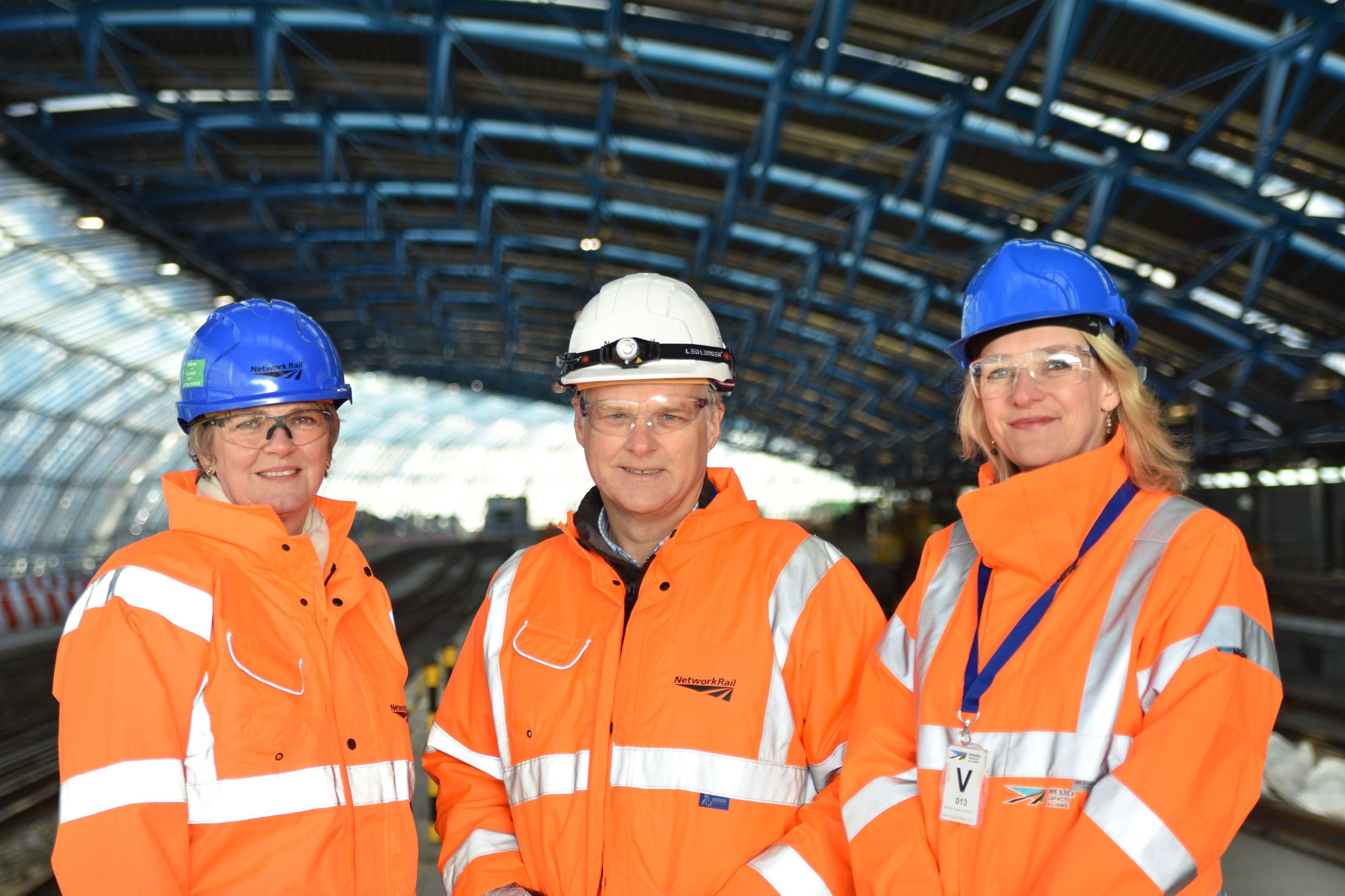 (l-r) Janice Crawford, Regional Director of Infrastructure Projects at Network Rail; Mark Carne, Chief Executive of Network Rail; and Becky Lumlock, Route Managing Director at Network Rail, joined engineers on site at Waterloo over Christmas