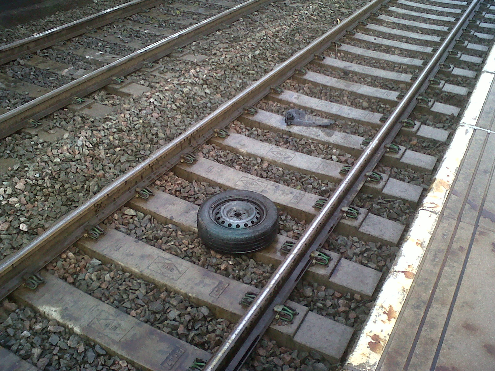 One of thirty tyres and wheels placed on the track at Wilnecote station on 20 March which were struck by a train
