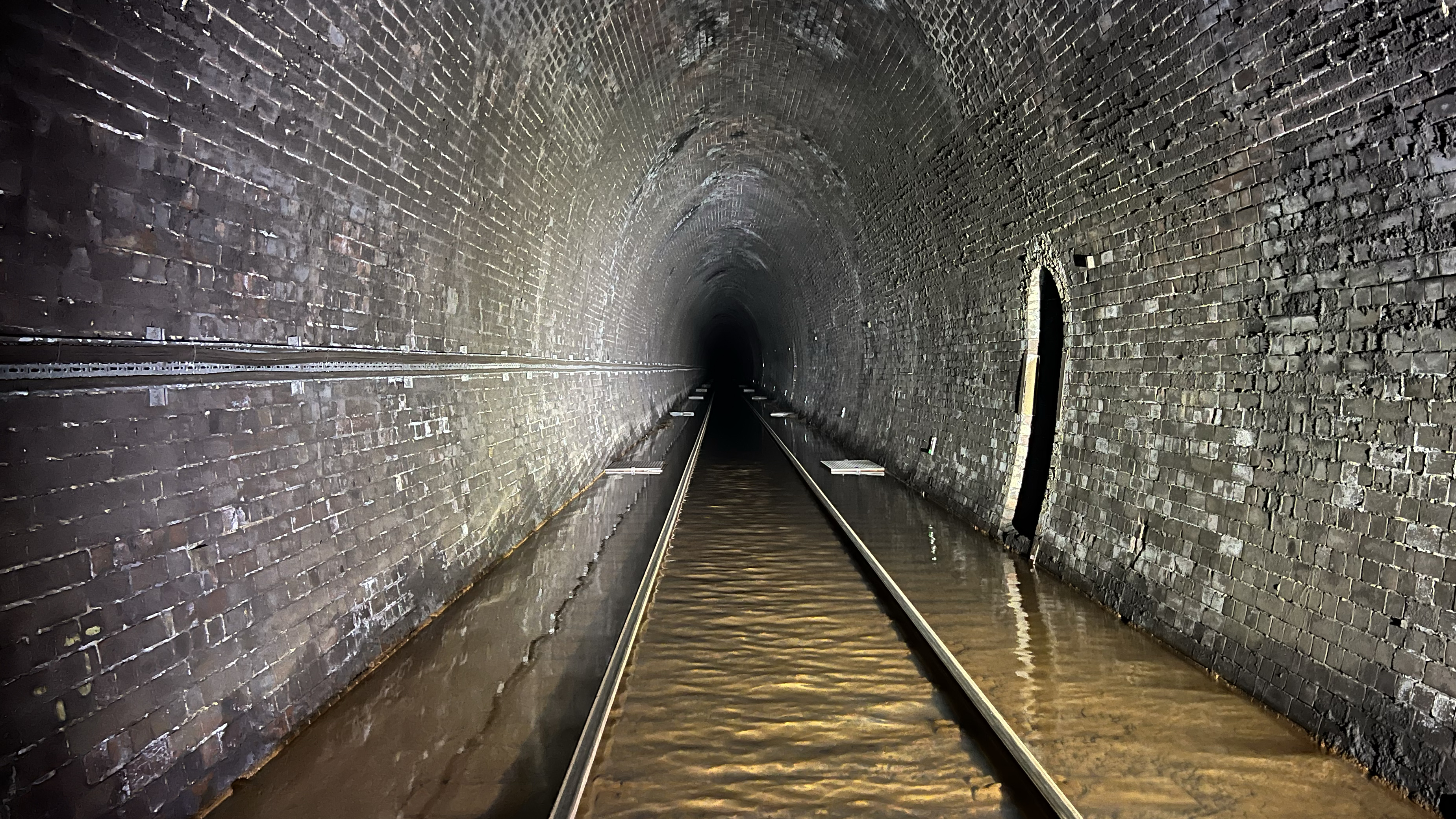 Flood water in Whitehaven tunnel containing iron ochre