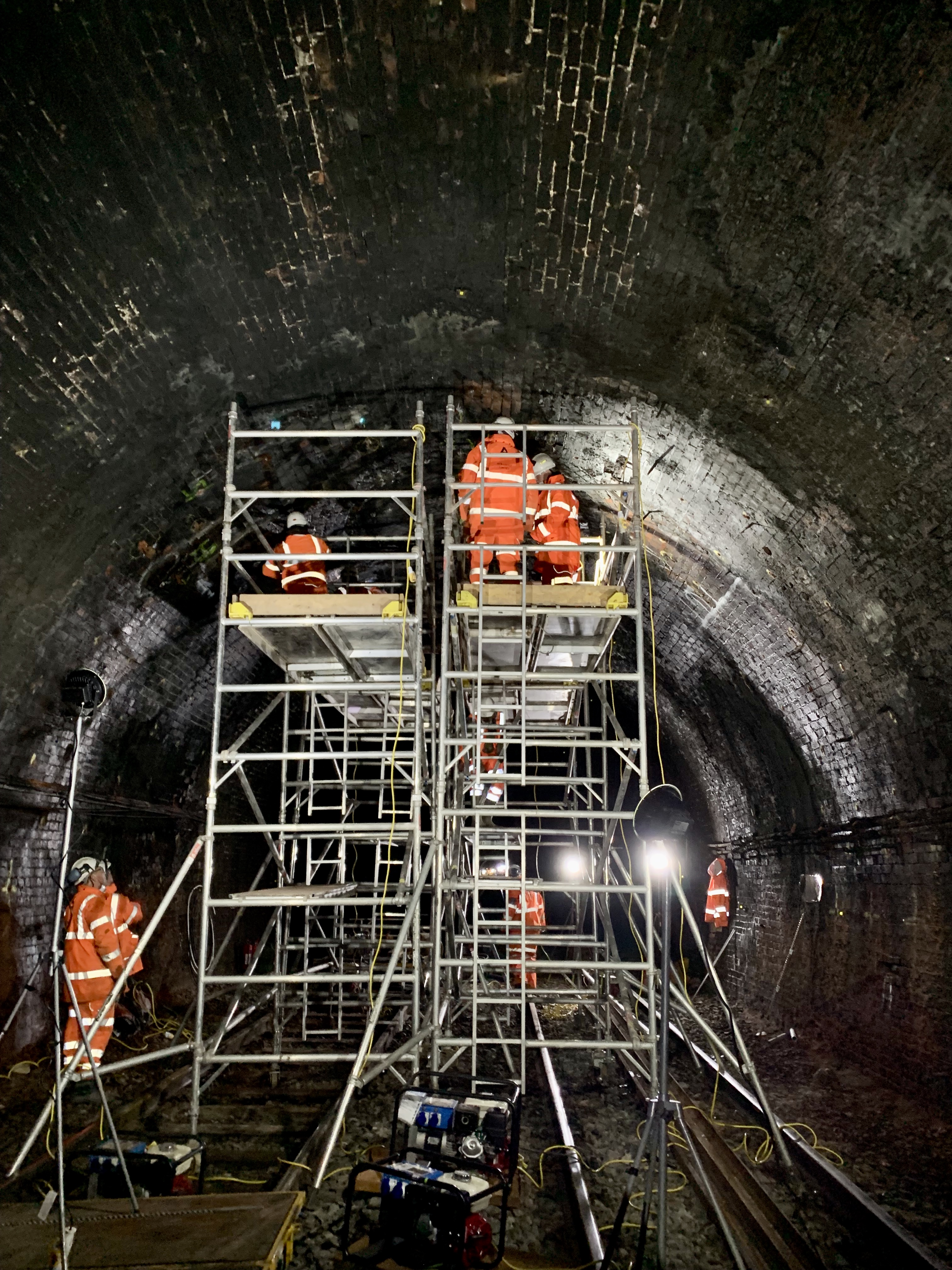 Working taking place inside Old Hill tunnel in Rowley Regis