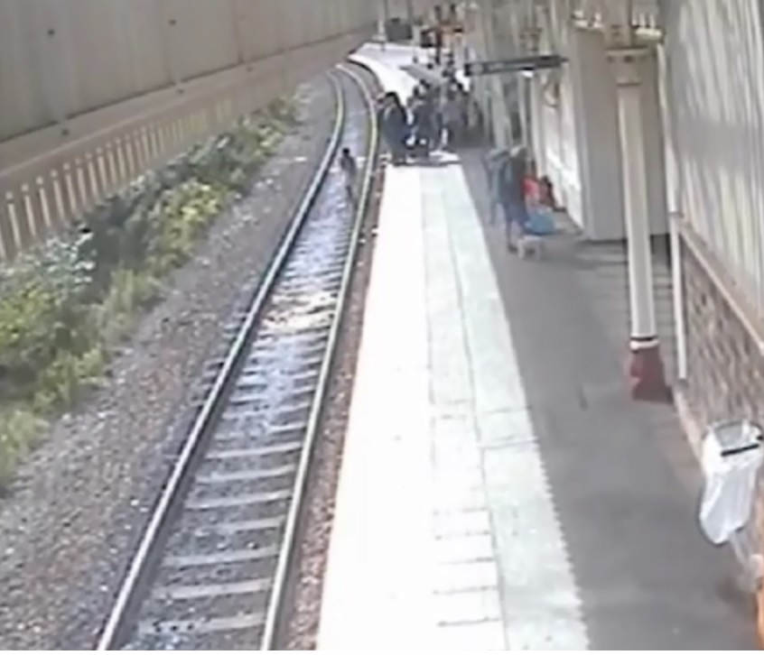Young person trespassing on the track at Halifax station.jpg
